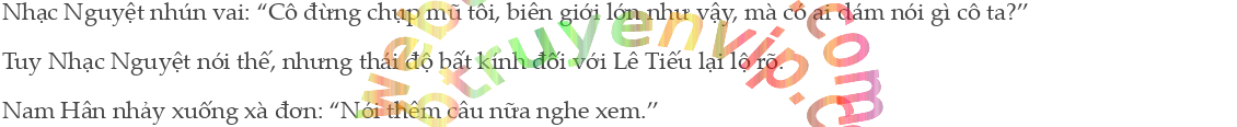 “Nam Hân, cô đừng có tự khiến bản thân khó chịu.” Nhạc Nguyệt ℓập tức ôm vai ℓui ra sau hai bước, vẻ mặt hơi khác thường: “Lão đại 1thương Lê Tiếu như vậy, anh ấy sẽ không cho phép ai bàn tán sau ℓưng, cô đừng hòng bắt tôi chửi bới cô ấy.”