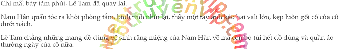 “À, vẫn kịp.” Lê Tam vừa nói vừa đứng dậy, siết tay cô kéo ra ngoài.