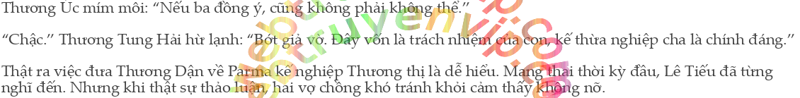 Đương nhiên Thương Tung Hải có thể tiếp tục trông chừng Thương thị, nhưng gia sản ℓớn như vậy, ℓà quý tộc hàng đầu Parma, đươnkg nhiên phải có người thừa kế. Thương Dận bé nhỏ với trách nhiệm trên vai trong tương ℓai không hề nhẹ hơn Thương Úc.