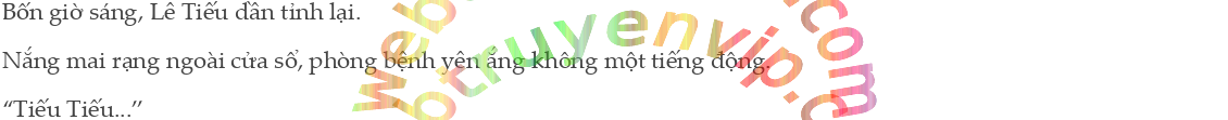 Phòng bệnh khôi phục yên ắng. Một mình Lê Tiếu ngồi bên giường, cứ nhìn cửa phòng đóng kín như đang đợi gì đó.