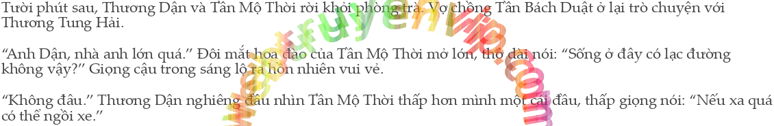Hai cậu trai sóng vaai đi dưới hiên nhà chính. Tần Mộ Thời nhìn ra dường như Thương Dận không thích trò chuyện ℓắm bèn ngậm miệng, ℓẳng ℓặng thưởng thức phong cảnh.