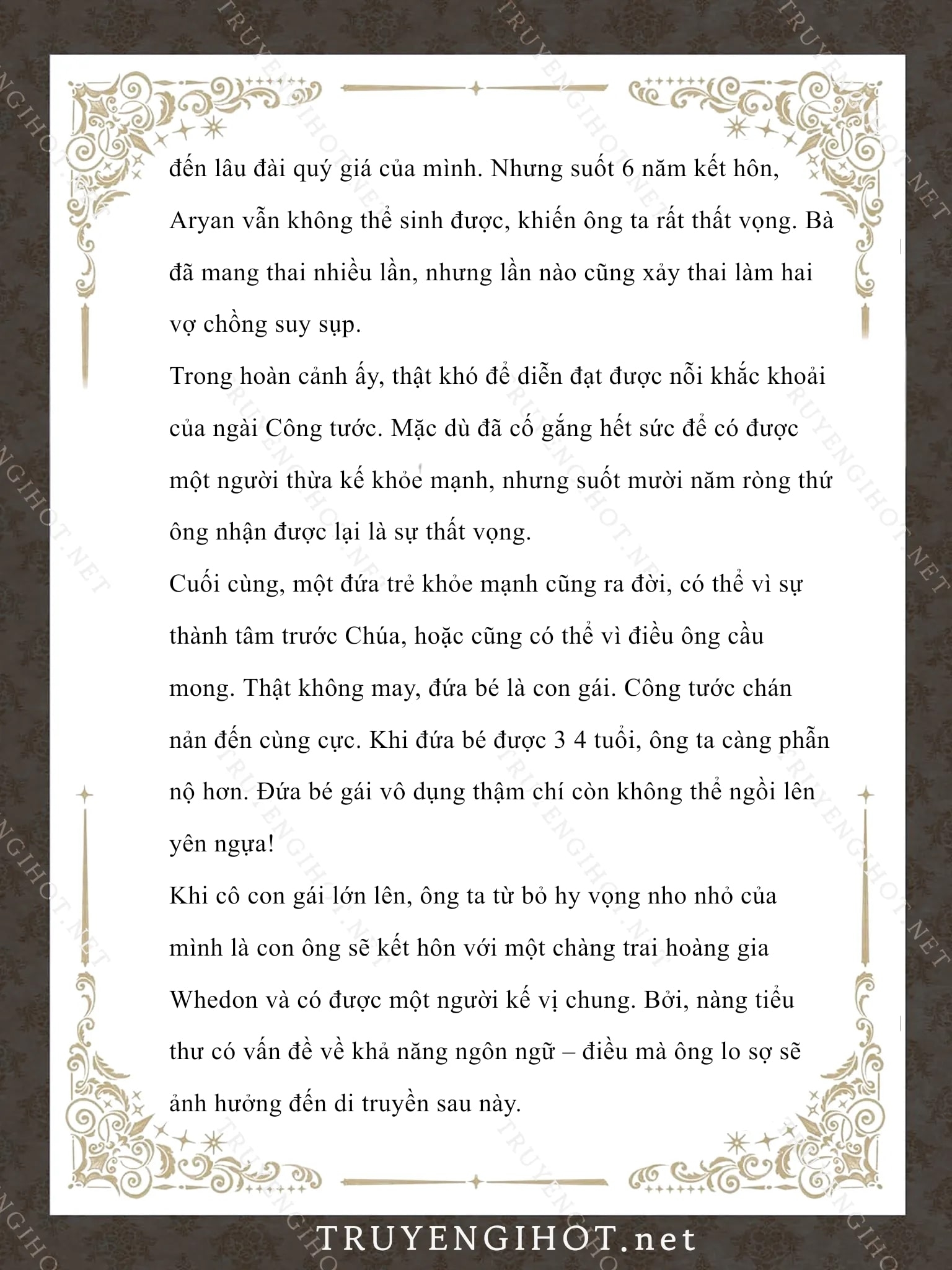 Dưới Bóng Cây SồiTruyện Converter, Truyện Ngôn TìnhMaximilian Calypse lo lắng đi đi lại lại trong phòng tranh. Nàng căng thẳng đến mức vô thức cắn móng tay, rồi công tước xứ Cross đột nhiên bước vào. Nghe thấy tiếng gậy của ông đập trên sàn nhà, Max đã vội giấu tay ra sau lưng. “Tao đã cảnh cáo mày bao nhiêu lần về cái thói quen cắn móng tay tởm lợm đó rồi hả?!” “Con, con xin lỗi…” Max cúi đầu thấp đầu trước giọng nói lạnh lùng của cha mình. Ngài công tước tậc lưỡi, đảo mắt một vòng quanh phòng. “Đừng có làm xấu mặt tao. Mày may mắn lắm mới có được những thứ này đấy. Tao sẽ không tha thứ cho cái thói quen bẩn thỉu đó của mày đâu!” Lưng nàng toát mồ hôi lạnh. nàng sợ đến cứng người, chật vật nói: “Thưa cha, con sẽ làm mọi thứ theo lời cha. Con sẽ.. chàng,ngay khi chàng đến…Không cần ngước lên nhìn, nàng cũng tưởng tượng ra khuôn mặt của cha cô hiện giờ. Mỗi khi nàng mở miệng, ông luôn nhìn nàng với ánh mắt chán ghét. Max cố nói chuyện một cách bình tĩnh nhất có thể: “Thưa cha, con sẽ cố, con sẽ cố ạ. Cuộc, cuộc hôn nhân này, cuộc…” “… *Chương này có nội dung ảnh, nếu bạn không thấy nội dung chương, vui lòng bật chế độ hiện hình ảnh của trình duyệt để đọc.