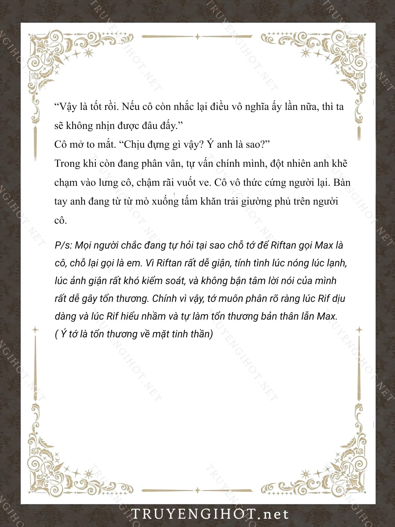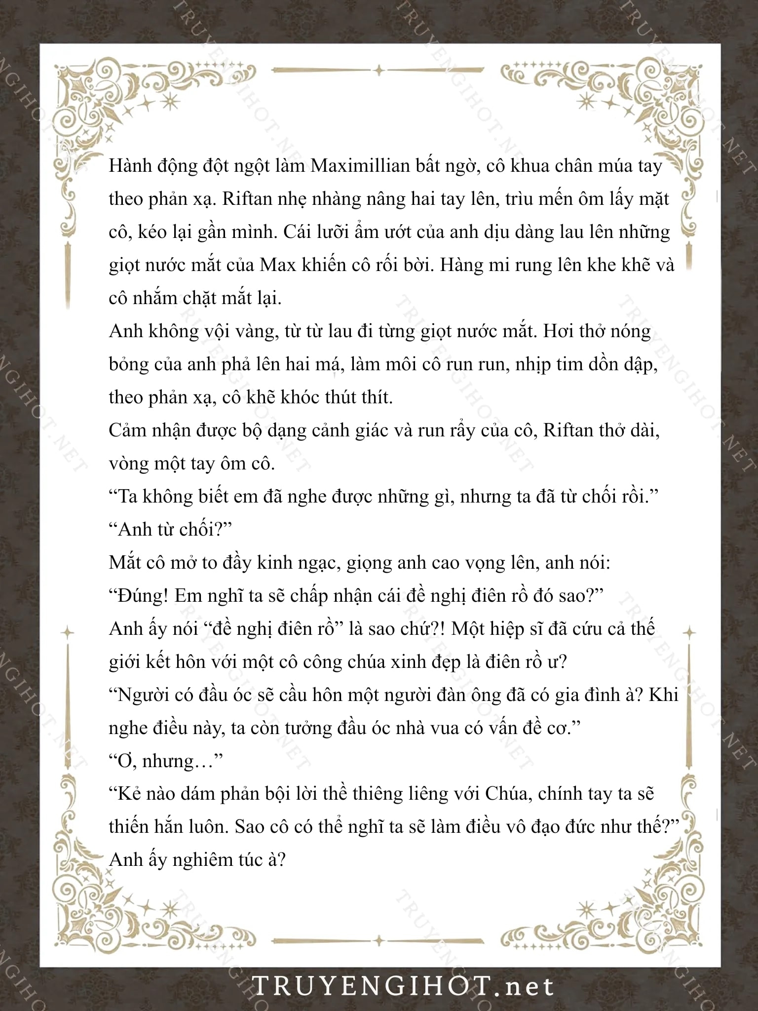 Dưới Bóng Cây SồiTruyện Converter, Truyện Ngôn TìnhMaximilian Calypse lo lắng đi đi lại lại trong phòng tranh. Nàng căng thẳng đến mức vô thức cắn móng tay, rồi công tước xứ Cross đột nhiên bước vào. Nghe thấy tiếng gậy của ông đập trên sàn nhà, Max đã vội giấu tay ra sau lưng. “Tao đã cảnh cáo mày bao nhiêu lần về cái thói quen cắn móng tay tởm lợm đó rồi hả?!” “Con, con xin lỗi…” Max cúi đầu thấp đầu trước giọng nói lạnh lùng của cha mình. Ngài công tước tậc lưỡi, đảo mắt một vòng quanh phòng. “Đừng có làm xấu mặt tao. Mày may mắn lắm mới có được những thứ này đấy. Tao sẽ không tha thứ cho cái thói quen bẩn thỉu đó của mày đâu!” Lưng nàng toát mồ hôi lạnh. nàng sợ đến cứng người, chật vật nói: “Thưa cha, con sẽ làm mọi thứ theo lời cha. Con sẽ.. chàng,ngay khi chàng đến…Không cần ngước lên nhìn, nàng cũng tưởng tượng ra khuôn mặt của cha cô hiện giờ. Mỗi khi nàng mở miệng, ông luôn nhìn nàng với ánh mắt chán ghét. Max cố nói chuyện một cách bình tĩnh nhất có thể: “Thưa cha, con sẽ cố, con sẽ cố ạ. Cuộc, cuộc hôn nhân này, cuộc…” “… *Chương này có nội dung ảnh, nếu bạn không thấy nội dung chương, vui lòng bật chế độ hiện hình ảnh của trình duyệt để đọc.