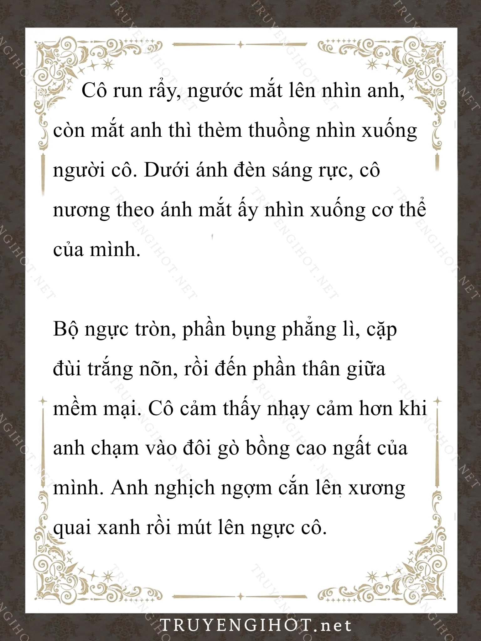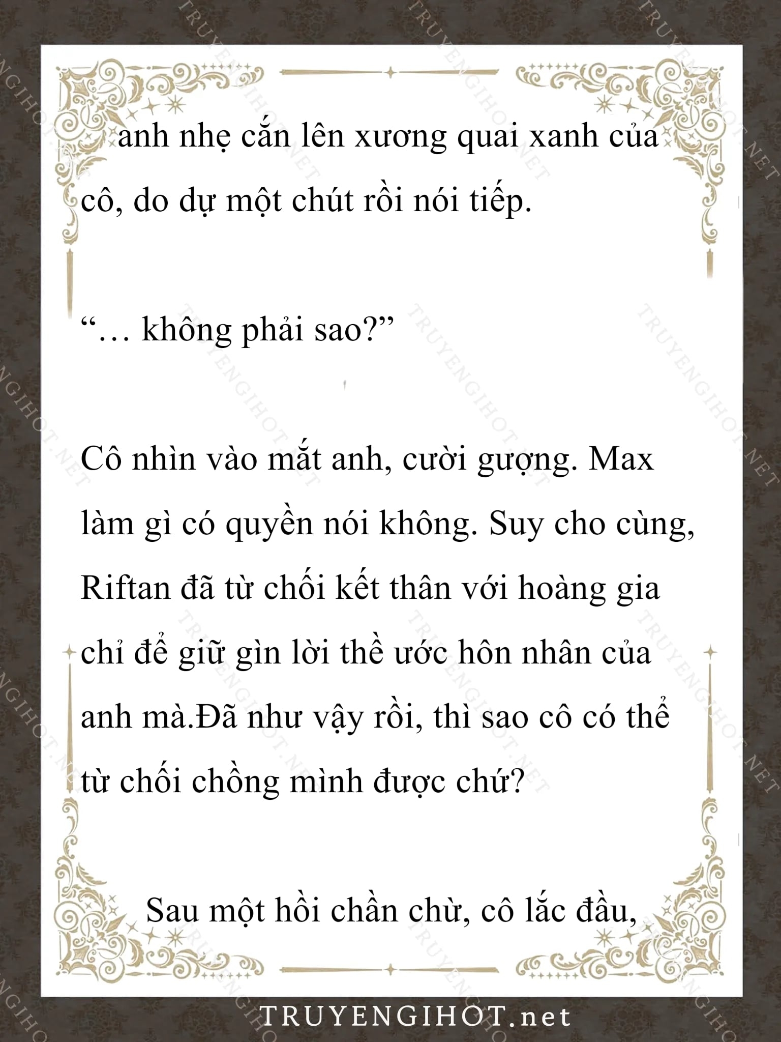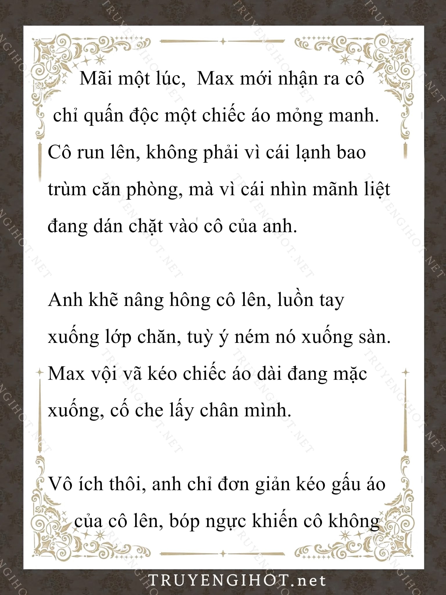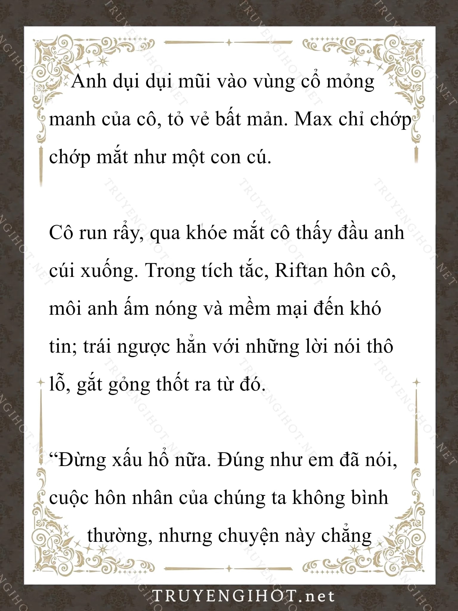 Dưới Bóng Cây SồiTruyện Converter, Truyện Ngôn TìnhMaximilian Calypse lo lắng đi đi lại lại trong phòng tranh. Nàng căng thẳng đến mức vô thức cắn móng tay, rồi công tước xứ Cross đột nhiên bước vào. Nghe thấy tiếng gậy của ông đập trên sàn nhà, Max đã vội giấu tay ra sau lưng. “Tao đã cảnh cáo mày bao nhiêu lần về cái thói quen cắn móng tay tởm lợm đó rồi hả?!” “Con, con xin lỗi…” Max cúi đầu thấp đầu trước giọng nói lạnh lùng của cha mình. Ngài công tước tậc lưỡi, đảo mắt một vòng quanh phòng. “Đừng có làm xấu mặt tao. Mày may mắn lắm mới có được những thứ này đấy. Tao sẽ không tha thứ cho cái thói quen bẩn thỉu đó của mày đâu!” Lưng nàng toát mồ hôi lạnh. nàng sợ đến cứng người, chật vật nói: “Thưa cha, con sẽ làm mọi thứ theo lời cha. Con sẽ.. chàng,ngay khi chàng đến…Không cần ngước lên nhìn, nàng cũng tưởng tượng ra khuôn mặt của cha cô hiện giờ. Mỗi khi nàng mở miệng, ông luôn nhìn nàng với ánh mắt chán ghét. Max cố nói chuyện một cách bình tĩnh nhất có thể: “Thưa cha, con sẽ cố, con sẽ cố ạ. Cuộc, cuộc hôn nhân này, cuộc…” “… *Chương này có nội dung ảnh, nếu bạn không thấy nội dung chương, vui lòng bật chế độ hiện hình ảnh của trình duyệt để đọc.