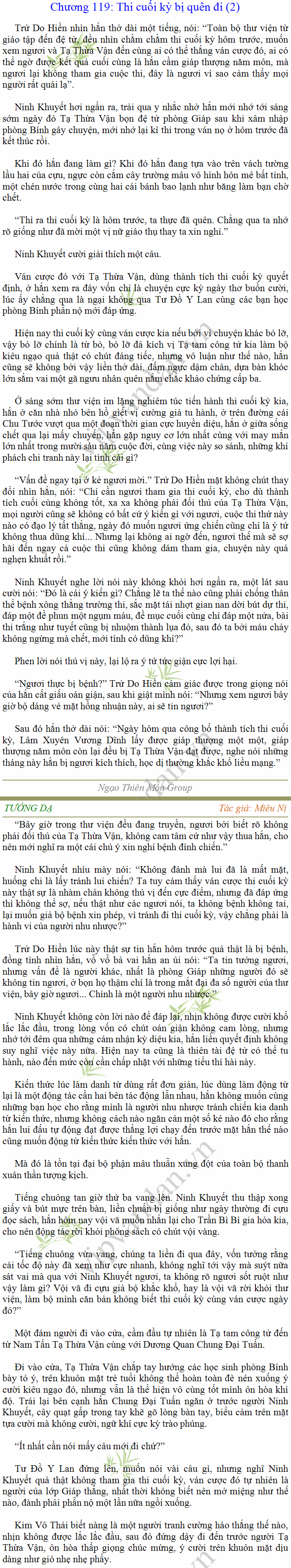 Tướng DạTruyện Converter, Truyện Huyền Huyễn, Truyện Kiếm Hiệp, Truyện Tiên HiệpTrên hoang nguyên trống trải bỗng xuất hiện ba người, cả ba đều không hẹn mà dừng chân dưới một thân cây còi cọc hiếm hoi, bọn họ không ai lên tiếng, chỉ im lặng cúi đầu nhìn xuống, tựa như dưới gốc cây có thứ gì đó rất thú vị, rất đáng để nghiên cứu và nghiền ngẫm. Hai đàn kiến vây kín quanh rễ cây màu nâu lộ ra trên mặt đất lạnh cóng tiến hành chiến tranh giành lãnh thổ, có lẽ vì trên mảnh hoang nguyên cằn cỗi vắng vẻ này chiếc rễ cây là một nơi trú ẩn tuyệt vời có một không hai nên trận chiến diễn ra hết sức khốc liệt, chỉ sau một lúc vài nghìn con kiến đã biến thành thi thể. Máu tanh là thế, nhưng thực tế trong mắt con người, vài nghìn xác kiến cũng chỉ là một mảng đen đen nhỏ xíu.Khí trời vẫn rất lạnh lẽo nhưng ba người đứng đó y phục lại khá mỏng manh, hình như họ không biết sợ lạnh là gì, cứ đứng bất động chăm chú quan sát. Không biết qua bao nhiêu lâu, bỗng một giọng khe khẽ cất lên:- Nước kiến nơi thế tục, đại đạo ra sao?Người vừa lên tiếng là một thiếu niên mặt mũi sáng sủa… *Chương này có nội dung ảnh, nếu bạn không thấy nội dung chương, vui lòng bật chế độ hiện hình ảnh của trình duyệt để đọc.