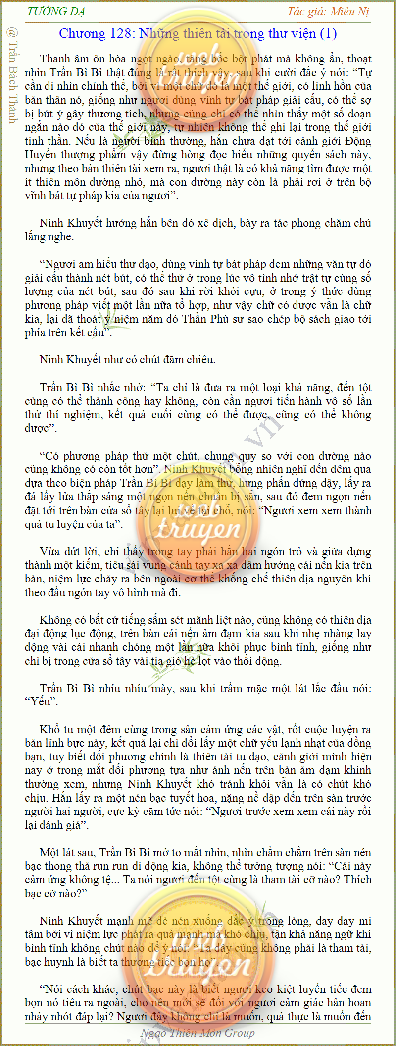 Tướng DạTruyện Converter, Truyện Huyền Huyễn, Truyện Kiếm Hiệp, Truyện Tiên HiệpTrên hoang nguyên trống trải bỗng xuất hiện ba người, cả ba đều không hẹn mà dừng chân dưới một thân cây còi cọc hiếm hoi, bọn họ không ai lên tiếng, chỉ im lặng cúi đầu nhìn xuống, tựa như dưới gốc cây có thứ gì đó rất thú vị, rất đáng để nghiên cứu và nghiền ngẫm. Hai đàn kiến vây kín quanh rễ cây màu nâu lộ ra trên mặt đất lạnh cóng tiến hành chiến tranh giành lãnh thổ, có lẽ vì trên mảnh hoang nguyên cằn cỗi vắng vẻ này chiếc rễ cây là một nơi trú ẩn tuyệt vời có một không hai nên trận chiến diễn ra hết sức khốc liệt, chỉ sau một lúc vài nghìn con kiến đã biến thành thi thể. Máu tanh là thế, nhưng thực tế trong mắt con người, vài nghìn xác kiến cũng chỉ là một mảng đen đen nhỏ xíu.Khí trời vẫn rất lạnh lẽo nhưng ba người đứng đó y phục lại khá mỏng manh, hình như họ không biết sợ lạnh là gì, cứ đứng bất động chăm chú quan sát. Không biết qua bao nhiêu lâu, bỗng một giọng khe khẽ cất lên:- Nước kiến nơi thế tục, đại đạo ra sao?Người vừa lên tiếng là một thiếu niên mặt mũi sáng sủa… *Chương này có nội dung ảnh, nếu bạn không thấy nội dung chương, vui lòng bật chế độ hiện hình ảnh của trình duyệt để đọc.