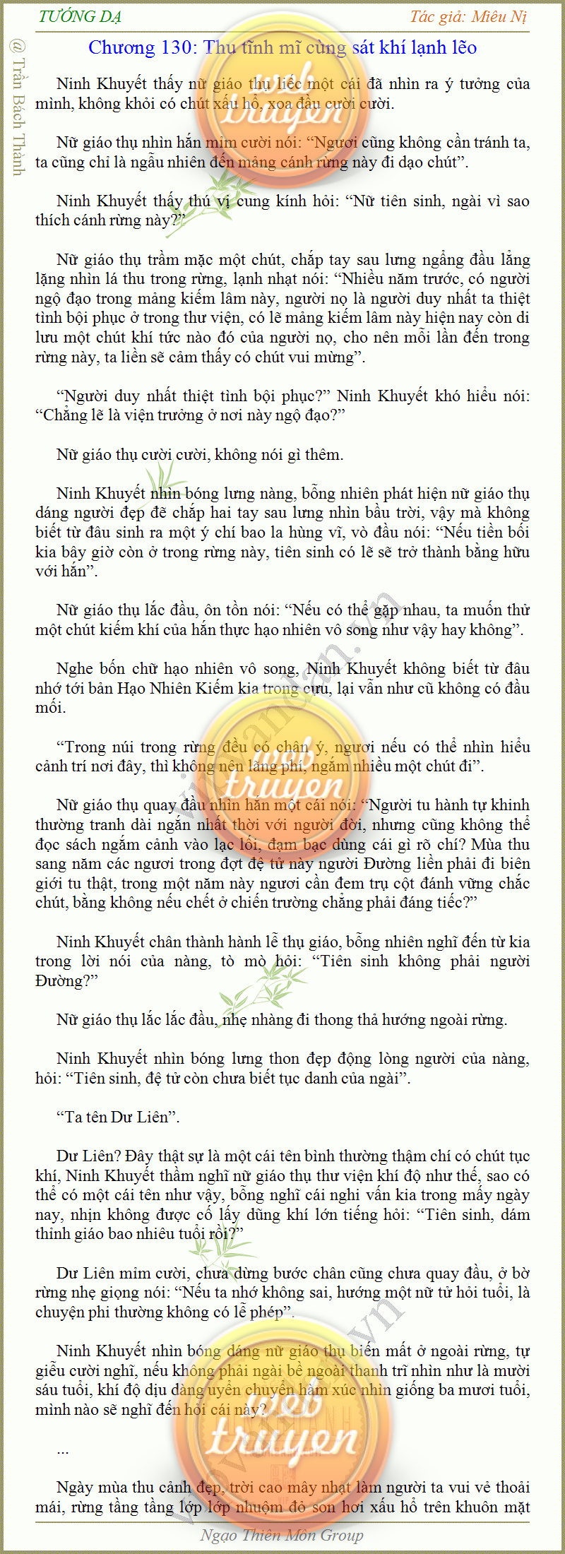 Tướng DạTruyện Converter, Truyện Huyền Huyễn, Truyện Kiếm Hiệp, Truyện Tiên HiệpTrên hoang nguyên trống trải bỗng xuất hiện ba người, cả ba đều không hẹn mà dừng chân dưới một thân cây còi cọc hiếm hoi, bọn họ không ai lên tiếng, chỉ im lặng cúi đầu nhìn xuống, tựa như dưới gốc cây có thứ gì đó rất thú vị, rất đáng để nghiên cứu và nghiền ngẫm. Hai đàn kiến vây kín quanh rễ cây màu nâu lộ ra trên mặt đất lạnh cóng tiến hành chiến tranh giành lãnh thổ, có lẽ vì trên mảnh hoang nguyên cằn cỗi vắng vẻ này chiếc rễ cây là một nơi trú ẩn tuyệt vời có một không hai nên trận chiến diễn ra hết sức khốc liệt, chỉ sau một lúc vài nghìn con kiến đã biến thành thi thể. Máu tanh là thế, nhưng thực tế trong mắt con người, vài nghìn xác kiến cũng chỉ là một mảng đen đen nhỏ xíu.Khí trời vẫn rất lạnh lẽo nhưng ba người đứng đó y phục lại khá mỏng manh, hình như họ không biết sợ lạnh là gì, cứ đứng bất động chăm chú quan sát. Không biết qua bao nhiêu lâu, bỗng một giọng khe khẽ cất lên:- Nước kiến nơi thế tục, đại đạo ra sao?Người vừa lên tiếng là một thiếu niên mặt mũi sáng sủa… *Chương này có nội dung ảnh, nếu bạn không thấy nội dung chương, vui lòng bật chế độ hiện hình ảnh của trình duyệt để đọc.