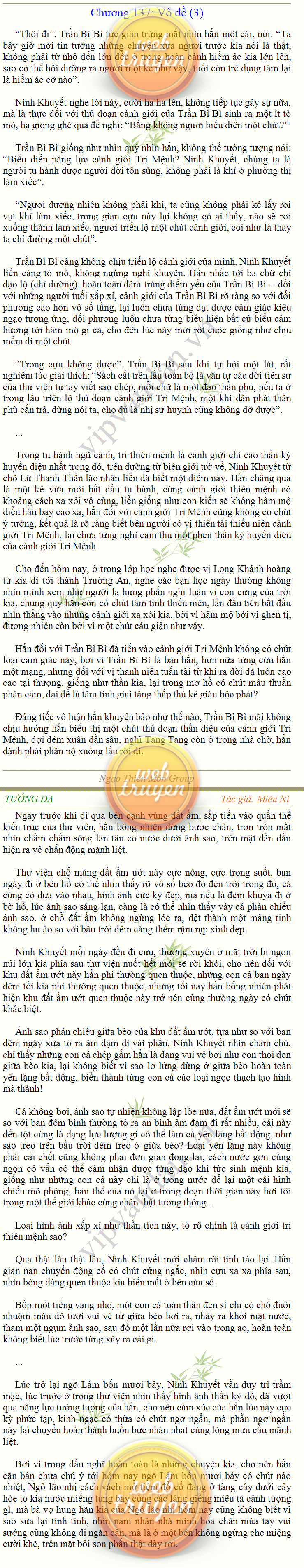 Tướng DạTruyện Converter, Truyện Huyền Huyễn, Truyện Kiếm Hiệp, Truyện Tiên HiệpTrên hoang nguyên trống trải bỗng xuất hiện ba người, cả ba đều không hẹn mà dừng chân dưới một thân cây còi cọc hiếm hoi, bọn họ không ai lên tiếng, chỉ im lặng cúi đầu nhìn xuống, tựa như dưới gốc cây có thứ gì đó rất thú vị, rất đáng để nghiên cứu và nghiền ngẫm. Hai đàn kiến vây kín quanh rễ cây màu nâu lộ ra trên mặt đất lạnh cóng tiến hành chiến tranh giành lãnh thổ, có lẽ vì trên mảnh hoang nguyên cằn cỗi vắng vẻ này chiếc rễ cây là một nơi trú ẩn tuyệt vời có một không hai nên trận chiến diễn ra hết sức khốc liệt, chỉ sau một lúc vài nghìn con kiến đã biến thành thi thể. Máu tanh là thế, nhưng thực tế trong mắt con người, vài nghìn xác kiến cũng chỉ là một mảng đen đen nhỏ xíu.Khí trời vẫn rất lạnh lẽo nhưng ba người đứng đó y phục lại khá mỏng manh, hình như họ không biết sợ lạnh là gì, cứ đứng bất động chăm chú quan sát. Không biết qua bao nhiêu lâu, bỗng một giọng khe khẽ cất lên:- Nước kiến nơi thế tục, đại đạo ra sao?Người vừa lên tiếng là một thiếu niên mặt mũi sáng sủa… *Chương này có nội dung ảnh, nếu bạn không thấy nội dung chương, vui lòng bật chế độ hiện hình ảnh của trình duyệt để đọc.