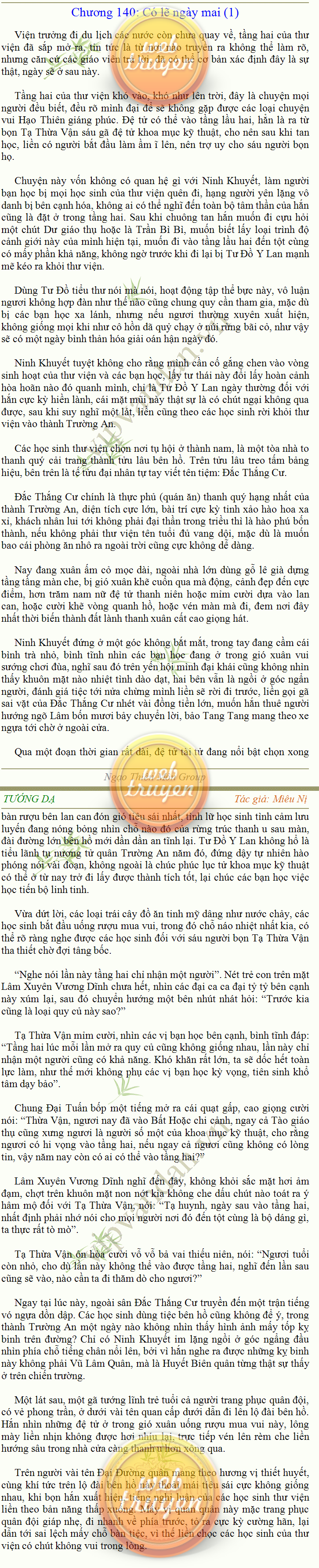 Tướng DạTruyện Converter, Truyện Huyền Huyễn, Truyện Kiếm Hiệp, Truyện Tiên HiệpTrên hoang nguyên trống trải bỗng xuất hiện ba người, cả ba đều không hẹn mà dừng chân dưới một thân cây còi cọc hiếm hoi, bọn họ không ai lên tiếng, chỉ im lặng cúi đầu nhìn xuống, tựa như dưới gốc cây có thứ gì đó rất thú vị, rất đáng để nghiên cứu và nghiền ngẫm. Hai đàn kiến vây kín quanh rễ cây màu nâu lộ ra trên mặt đất lạnh cóng tiến hành chiến tranh giành lãnh thổ, có lẽ vì trên mảnh hoang nguyên cằn cỗi vắng vẻ này chiếc rễ cây là một nơi trú ẩn tuyệt vời có một không hai nên trận chiến diễn ra hết sức khốc liệt, chỉ sau một lúc vài nghìn con kiến đã biến thành thi thể. Máu tanh là thế, nhưng thực tế trong mắt con người, vài nghìn xác kiến cũng chỉ là một mảng đen đen nhỏ xíu.Khí trời vẫn rất lạnh lẽo nhưng ba người đứng đó y phục lại khá mỏng manh, hình như họ không biết sợ lạnh là gì, cứ đứng bất động chăm chú quan sát. Không biết qua bao nhiêu lâu, bỗng một giọng khe khẽ cất lên:- Nước kiến nơi thế tục, đại đạo ra sao?Người vừa lên tiếng là một thiếu niên mặt mũi sáng sủa… *Chương này có nội dung ảnh, nếu bạn không thấy nội dung chương, vui lòng bật chế độ hiện hình ảnh của trình duyệt để đọc.