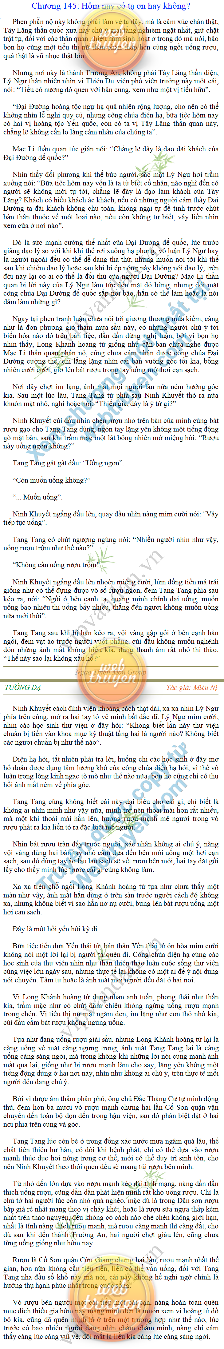 Tướng DạTruyện Converter, Truyện Huyền Huyễn, Truyện Kiếm Hiệp, Truyện Tiên HiệpTrên hoang nguyên trống trải bỗng xuất hiện ba người, cả ba đều không hẹn mà dừng chân dưới một thân cây còi cọc hiếm hoi, bọn họ không ai lên tiếng, chỉ im lặng cúi đầu nhìn xuống, tựa như dưới gốc cây có thứ gì đó rất thú vị, rất đáng để nghiên cứu và nghiền ngẫm. Hai đàn kiến vây kín quanh rễ cây màu nâu lộ ra trên mặt đất lạnh cóng tiến hành chiến tranh giành lãnh thổ, có lẽ vì trên mảnh hoang nguyên cằn cỗi vắng vẻ này chiếc rễ cây là một nơi trú ẩn tuyệt vời có một không hai nên trận chiến diễn ra hết sức khốc liệt, chỉ sau một lúc vài nghìn con kiến đã biến thành thi thể. Máu tanh là thế, nhưng thực tế trong mắt con người, vài nghìn xác kiến cũng chỉ là một mảng đen đen nhỏ xíu.Khí trời vẫn rất lạnh lẽo nhưng ba người đứng đó y phục lại khá mỏng manh, hình như họ không biết sợ lạnh là gì, cứ đứng bất động chăm chú quan sát. Không biết qua bao nhiêu lâu, bỗng một giọng khe khẽ cất lên:- Nước kiến nơi thế tục, đại đạo ra sao?Người vừa lên tiếng là một thiếu niên mặt mũi sáng sủa… *Chương này có nội dung ảnh, nếu bạn không thấy nội dung chương, vui lòng bật chế độ hiện hình ảnh của trình duyệt để đọc.