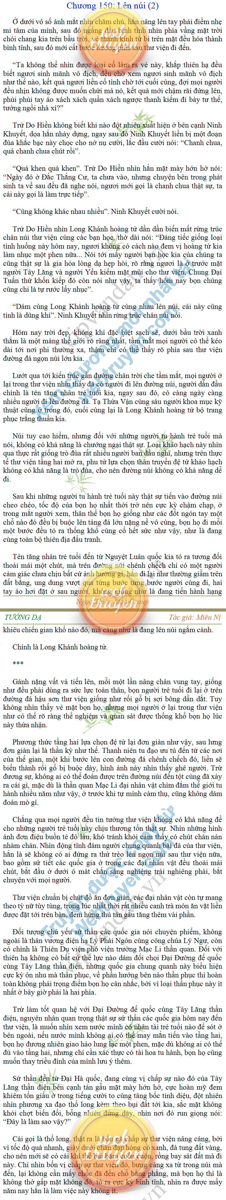 Tướng DạTruyện Converter, Truyện Huyền Huyễn, Truyện Kiếm Hiệp, Truyện Tiên HiệpTrên hoang nguyên trống trải bỗng xuất hiện ba người, cả ba đều không hẹn mà dừng chân dưới một thân cây còi cọc hiếm hoi, bọn họ không ai lên tiếng, chỉ im lặng cúi đầu nhìn xuống, tựa như dưới gốc cây có thứ gì đó rất thú vị, rất đáng để nghiên cứu và nghiền ngẫm. Hai đàn kiến vây kín quanh rễ cây màu nâu lộ ra trên mặt đất lạnh cóng tiến hành chiến tranh giành lãnh thổ, có lẽ vì trên mảnh hoang nguyên cằn cỗi vắng vẻ này chiếc rễ cây là một nơi trú ẩn tuyệt vời có một không hai nên trận chiến diễn ra hết sức khốc liệt, chỉ sau một lúc vài nghìn con kiến đã biến thành thi thể. Máu tanh là thế, nhưng thực tế trong mắt con người, vài nghìn xác kiến cũng chỉ là một mảng đen đen nhỏ xíu.Khí trời vẫn rất lạnh lẽo nhưng ba người đứng đó y phục lại khá mỏng manh, hình như họ không biết sợ lạnh là gì, cứ đứng bất động chăm chú quan sát. Không biết qua bao nhiêu lâu, bỗng một giọng khe khẽ cất lên:- Nước kiến nơi thế tục, đại đạo ra sao?Người vừa lên tiếng là một thiếu niên mặt mũi sáng sủa… *Chương này có nội dung ảnh, nếu bạn không thấy nội dung chương, vui lòng bật chế độ hiện hình ảnh của trình duyệt để đọc.