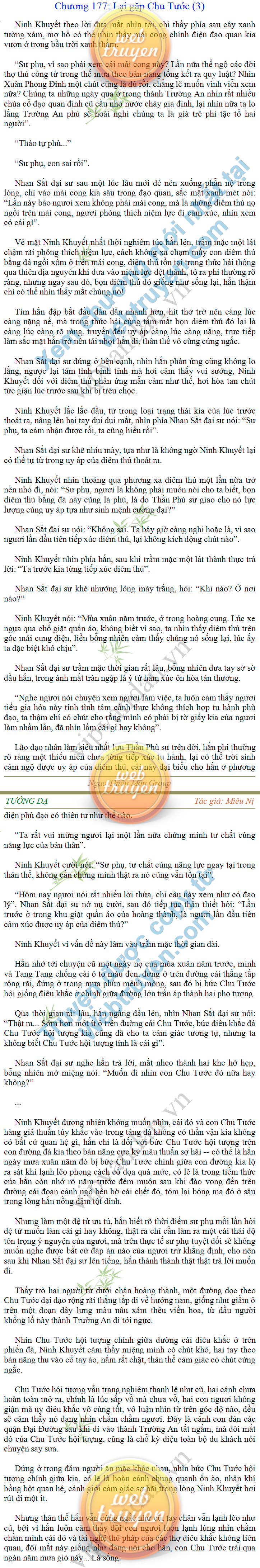 Tướng DạTruyện Converter, Truyện Huyền Huyễn, Truyện Kiếm Hiệp, Truyện Tiên HiệpTrên hoang nguyên trống trải bỗng xuất hiện ba người, cả ba đều không hẹn mà dừng chân dưới một thân cây còi cọc hiếm hoi, bọn họ không ai lên tiếng, chỉ im lặng cúi đầu nhìn xuống, tựa như dưới gốc cây có thứ gì đó rất thú vị, rất đáng để nghiên cứu và nghiền ngẫm. Hai đàn kiến vây kín quanh rễ cây màu nâu lộ ra trên mặt đất lạnh cóng tiến hành chiến tranh giành lãnh thổ, có lẽ vì trên mảnh hoang nguyên cằn cỗi vắng vẻ này chiếc rễ cây là một nơi trú ẩn tuyệt vời có một không hai nên trận chiến diễn ra hết sức khốc liệt, chỉ sau một lúc vài nghìn con kiến đã biến thành thi thể. Máu tanh là thế, nhưng thực tế trong mắt con người, vài nghìn xác kiến cũng chỉ là một mảng đen đen nhỏ xíu.Khí trời vẫn rất lạnh lẽo nhưng ba người đứng đó y phục lại khá mỏng manh, hình như họ không biết sợ lạnh là gì, cứ đứng bất động chăm chú quan sát. Không biết qua bao nhiêu lâu, bỗng một giọng khe khẽ cất lên:- Nước kiến nơi thế tục, đại đạo ra sao?Người vừa lên tiếng là một thiếu niên mặt mũi sáng sủa… *Chương này có nội dung ảnh, nếu bạn không thấy nội dung chương, vui lòng bật chế độ hiện hình ảnh của trình duyệt để đọc.