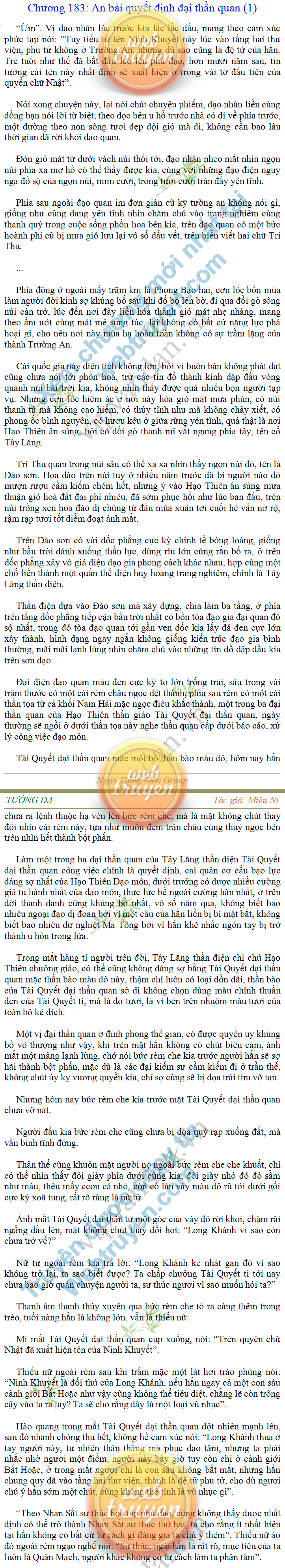 Tướng DạTruyện Converter, Truyện Huyền Huyễn, Truyện Kiếm Hiệp, Truyện Tiên HiệpTrên hoang nguyên trống trải bỗng xuất hiện ba người, cả ba đều không hẹn mà dừng chân dưới một thân cây còi cọc hiếm hoi, bọn họ không ai lên tiếng, chỉ im lặng cúi đầu nhìn xuống, tựa như dưới gốc cây có thứ gì đó rất thú vị, rất đáng để nghiên cứu và nghiền ngẫm. Hai đàn kiến vây kín quanh rễ cây màu nâu lộ ra trên mặt đất lạnh cóng tiến hành chiến tranh giành lãnh thổ, có lẽ vì trên mảnh hoang nguyên cằn cỗi vắng vẻ này chiếc rễ cây là một nơi trú ẩn tuyệt vời có một không hai nên trận chiến diễn ra hết sức khốc liệt, chỉ sau một lúc vài nghìn con kiến đã biến thành thi thể. Máu tanh là thế, nhưng thực tế trong mắt con người, vài nghìn xác kiến cũng chỉ là một mảng đen đen nhỏ xíu.Khí trời vẫn rất lạnh lẽo nhưng ba người đứng đó y phục lại khá mỏng manh, hình như họ không biết sợ lạnh là gì, cứ đứng bất động chăm chú quan sát. Không biết qua bao nhiêu lâu, bỗng một giọng khe khẽ cất lên:- Nước kiến nơi thế tục, đại đạo ra sao?Người vừa lên tiếng là một thiếu niên mặt mũi sáng sủa… *Chương này có nội dung ảnh, nếu bạn không thấy nội dung chương, vui lòng bật chế độ hiện hình ảnh của trình duyệt để đọc.