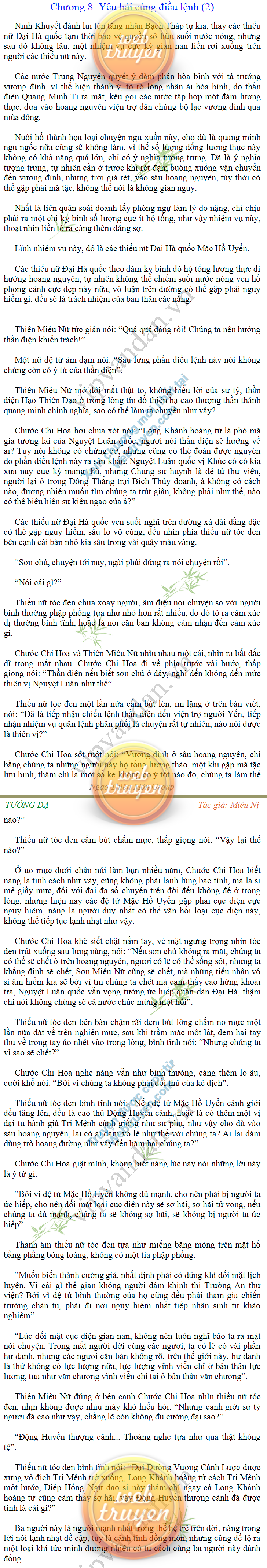 Tướng DạTruyện Converter, Truyện Huyền Huyễn, Truyện Kiếm Hiệp, Truyện Tiên HiệpTrên hoang nguyên trống trải bỗng xuất hiện ba người, cả ba đều không hẹn mà dừng chân dưới một thân cây còi cọc hiếm hoi, bọn họ không ai lên tiếng, chỉ im lặng cúi đầu nhìn xuống, tựa như dưới gốc cây có thứ gì đó rất thú vị, rất đáng để nghiên cứu và nghiền ngẫm. Hai đàn kiến vây kín quanh rễ cây màu nâu lộ ra trên mặt đất lạnh cóng tiến hành chiến tranh giành lãnh thổ, có lẽ vì trên mảnh hoang nguyên cằn cỗi vắng vẻ này chiếc rễ cây là một nơi trú ẩn tuyệt vời có một không hai nên trận chiến diễn ra hết sức khốc liệt, chỉ sau một lúc vài nghìn con kiến đã biến thành thi thể. Máu tanh là thế, nhưng thực tế trong mắt con người, vài nghìn xác kiến cũng chỉ là một mảng đen đen nhỏ xíu.Khí trời vẫn rất lạnh lẽo nhưng ba người đứng đó y phục lại khá mỏng manh, hình như họ không biết sợ lạnh là gì, cứ đứng bất động chăm chú quan sát. Không biết qua bao nhiêu lâu, bỗng một giọng khe khẽ cất lên:- Nước kiến nơi thế tục, đại đạo ra sao?Người vừa lên tiếng là một thiếu niên mặt mũi sáng sủa… *Chương này có nội dung ảnh, nếu bạn không thấy nội dung chương, vui lòng bật chế độ hiện hình ảnh của trình duyệt để đọc.