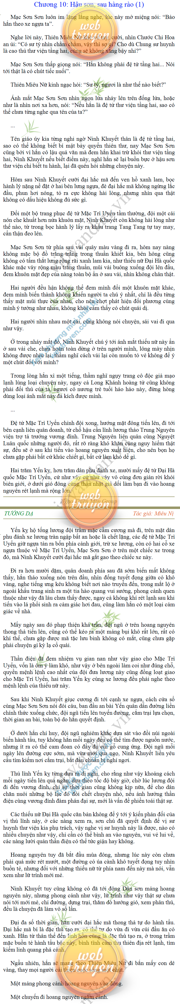 Tướng DạTruyện Converter, Truyện Huyền Huyễn, Truyện Kiếm Hiệp, Truyện Tiên HiệpTrên hoang nguyên trống trải bỗng xuất hiện ba người, cả ba đều không hẹn mà dừng chân dưới một thân cây còi cọc hiếm hoi, bọn họ không ai lên tiếng, chỉ im lặng cúi đầu nhìn xuống, tựa như dưới gốc cây có thứ gì đó rất thú vị, rất đáng để nghiên cứu và nghiền ngẫm. Hai đàn kiến vây kín quanh rễ cây màu nâu lộ ra trên mặt đất lạnh cóng tiến hành chiến tranh giành lãnh thổ, có lẽ vì trên mảnh hoang nguyên cằn cỗi vắng vẻ này chiếc rễ cây là một nơi trú ẩn tuyệt vời có một không hai nên trận chiến diễn ra hết sức khốc liệt, chỉ sau một lúc vài nghìn con kiến đã biến thành thi thể. Máu tanh là thế, nhưng thực tế trong mắt con người, vài nghìn xác kiến cũng chỉ là một mảng đen đen nhỏ xíu.Khí trời vẫn rất lạnh lẽo nhưng ba người đứng đó y phục lại khá mỏng manh, hình như họ không biết sợ lạnh là gì, cứ đứng bất động chăm chú quan sát. Không biết qua bao nhiêu lâu, bỗng một giọng khe khẽ cất lên:- Nước kiến nơi thế tục, đại đạo ra sao?Người vừa lên tiếng là một thiếu niên mặt mũi sáng sủa… *Chương này có nội dung ảnh, nếu bạn không thấy nội dung chương, vui lòng bật chế độ hiện hình ảnh của trình duyệt để đọc.