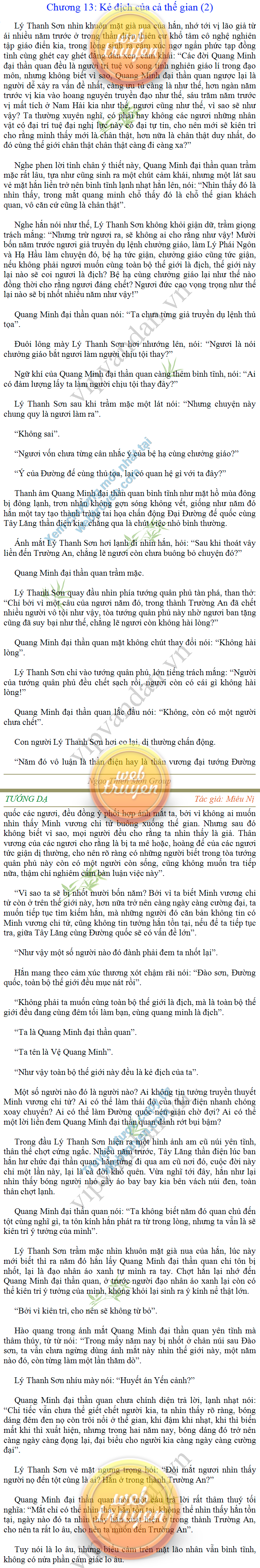 Tướng DạTruyện Converter, Truyện Huyền Huyễn, Truyện Kiếm Hiệp, Truyện Tiên HiệpTrên hoang nguyên trống trải bỗng xuất hiện ba người, cả ba đều không hẹn mà dừng chân dưới một thân cây còi cọc hiếm hoi, bọn họ không ai lên tiếng, chỉ im lặng cúi đầu nhìn xuống, tựa như dưới gốc cây có thứ gì đó rất thú vị, rất đáng để nghiên cứu và nghiền ngẫm. Hai đàn kiến vây kín quanh rễ cây màu nâu lộ ra trên mặt đất lạnh cóng tiến hành chiến tranh giành lãnh thổ, có lẽ vì trên mảnh hoang nguyên cằn cỗi vắng vẻ này chiếc rễ cây là một nơi trú ẩn tuyệt vời có một không hai nên trận chiến diễn ra hết sức khốc liệt, chỉ sau một lúc vài nghìn con kiến đã biến thành thi thể. Máu tanh là thế, nhưng thực tế trong mắt con người, vài nghìn xác kiến cũng chỉ là một mảng đen đen nhỏ xíu.Khí trời vẫn rất lạnh lẽo nhưng ba người đứng đó y phục lại khá mỏng manh, hình như họ không biết sợ lạnh là gì, cứ đứng bất động chăm chú quan sát. Không biết qua bao nhiêu lâu, bỗng một giọng khe khẽ cất lên:- Nước kiến nơi thế tục, đại đạo ra sao?Người vừa lên tiếng là một thiếu niên mặt mũi sáng sủa… *Chương này có nội dung ảnh, nếu bạn không thấy nội dung chương, vui lòng bật chế độ hiện hình ảnh của trình duyệt để đọc.