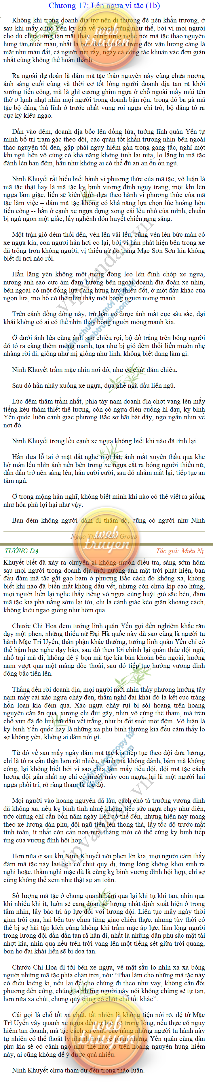 Tướng DạTruyện Converter, Truyện Huyền Huyễn, Truyện Kiếm Hiệp, Truyện Tiên HiệpTrên hoang nguyên trống trải bỗng xuất hiện ba người, cả ba đều không hẹn mà dừng chân dưới một thân cây còi cọc hiếm hoi, bọn họ không ai lên tiếng, chỉ im lặng cúi đầu nhìn xuống, tựa như dưới gốc cây có thứ gì đó rất thú vị, rất đáng để nghiên cứu và nghiền ngẫm. Hai đàn kiến vây kín quanh rễ cây màu nâu lộ ra trên mặt đất lạnh cóng tiến hành chiến tranh giành lãnh thổ, có lẽ vì trên mảnh hoang nguyên cằn cỗi vắng vẻ này chiếc rễ cây là một nơi trú ẩn tuyệt vời có một không hai nên trận chiến diễn ra hết sức khốc liệt, chỉ sau một lúc vài nghìn con kiến đã biến thành thi thể. Máu tanh là thế, nhưng thực tế trong mắt con người, vài nghìn xác kiến cũng chỉ là một mảng đen đen nhỏ xíu.Khí trời vẫn rất lạnh lẽo nhưng ba người đứng đó y phục lại khá mỏng manh, hình như họ không biết sợ lạnh là gì, cứ đứng bất động chăm chú quan sát. Không biết qua bao nhiêu lâu, bỗng một giọng khe khẽ cất lên:- Nước kiến nơi thế tục, đại đạo ra sao?Người vừa lên tiếng là một thiếu niên mặt mũi sáng sủa… *Chương này có nội dung ảnh, nếu bạn không thấy nội dung chương, vui lòng bật chế độ hiện hình ảnh của trình duyệt để đọc.