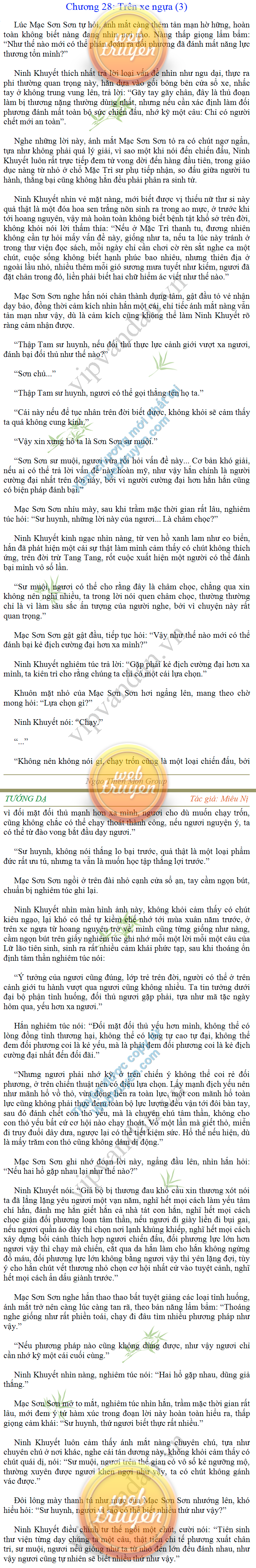 Tướng DạTruyện Converter, Truyện Huyền Huyễn, Truyện Kiếm Hiệp, Truyện Tiên HiệpTrên hoang nguyên trống trải bỗng xuất hiện ba người, cả ba đều không hẹn mà dừng chân dưới một thân cây còi cọc hiếm hoi, bọn họ không ai lên tiếng, chỉ im lặng cúi đầu nhìn xuống, tựa như dưới gốc cây có thứ gì đó rất thú vị, rất đáng để nghiên cứu và nghiền ngẫm. Hai đàn kiến vây kín quanh rễ cây màu nâu lộ ra trên mặt đất lạnh cóng tiến hành chiến tranh giành lãnh thổ, có lẽ vì trên mảnh hoang nguyên cằn cỗi vắng vẻ này chiếc rễ cây là một nơi trú ẩn tuyệt vời có một không hai nên trận chiến diễn ra hết sức khốc liệt, chỉ sau một lúc vài nghìn con kiến đã biến thành thi thể. Máu tanh là thế, nhưng thực tế trong mắt con người, vài nghìn xác kiến cũng chỉ là một mảng đen đen nhỏ xíu.Khí trời vẫn rất lạnh lẽo nhưng ba người đứng đó y phục lại khá mỏng manh, hình như họ không biết sợ lạnh là gì, cứ đứng bất động chăm chú quan sát. Không biết qua bao nhiêu lâu, bỗng một giọng khe khẽ cất lên:- Nước kiến nơi thế tục, đại đạo ra sao?Người vừa lên tiếng là một thiếu niên mặt mũi sáng sủa… *Chương này có nội dung ảnh, nếu bạn không thấy nội dung chương, vui lòng bật chế độ hiện hình ảnh của trình duyệt để đọc.