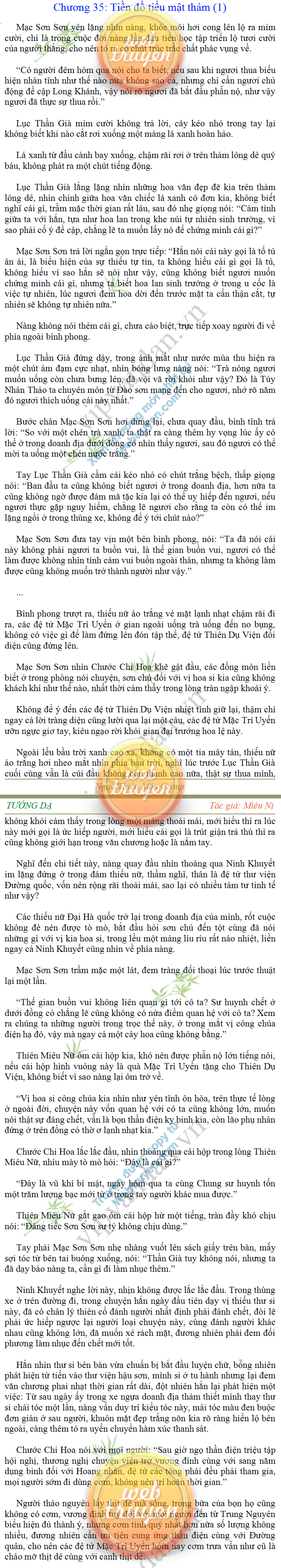 Tướng DạTruyện Converter, Truyện Huyền Huyễn, Truyện Kiếm Hiệp, Truyện Tiên HiệpTrên hoang nguyên trống trải bỗng xuất hiện ba người, cả ba đều không hẹn mà dừng chân dưới một thân cây còi cọc hiếm hoi, bọn họ không ai lên tiếng, chỉ im lặng cúi đầu nhìn xuống, tựa như dưới gốc cây có thứ gì đó rất thú vị, rất đáng để nghiên cứu và nghiền ngẫm. Hai đàn kiến vây kín quanh rễ cây màu nâu lộ ra trên mặt đất lạnh cóng tiến hành chiến tranh giành lãnh thổ, có lẽ vì trên mảnh hoang nguyên cằn cỗi vắng vẻ này chiếc rễ cây là một nơi trú ẩn tuyệt vời có một không hai nên trận chiến diễn ra hết sức khốc liệt, chỉ sau một lúc vài nghìn con kiến đã biến thành thi thể. Máu tanh là thế, nhưng thực tế trong mắt con người, vài nghìn xác kiến cũng chỉ là một mảng đen đen nhỏ xíu.Khí trời vẫn rất lạnh lẽo nhưng ba người đứng đó y phục lại khá mỏng manh, hình như họ không biết sợ lạnh là gì, cứ đứng bất động chăm chú quan sát. Không biết qua bao nhiêu lâu, bỗng một giọng khe khẽ cất lên:- Nước kiến nơi thế tục, đại đạo ra sao?Người vừa lên tiếng là một thiếu niên mặt mũi sáng sủa… *Chương này có nội dung ảnh, nếu bạn không thấy nội dung chương, vui lòng bật chế độ hiện hình ảnh của trình duyệt để đọc.