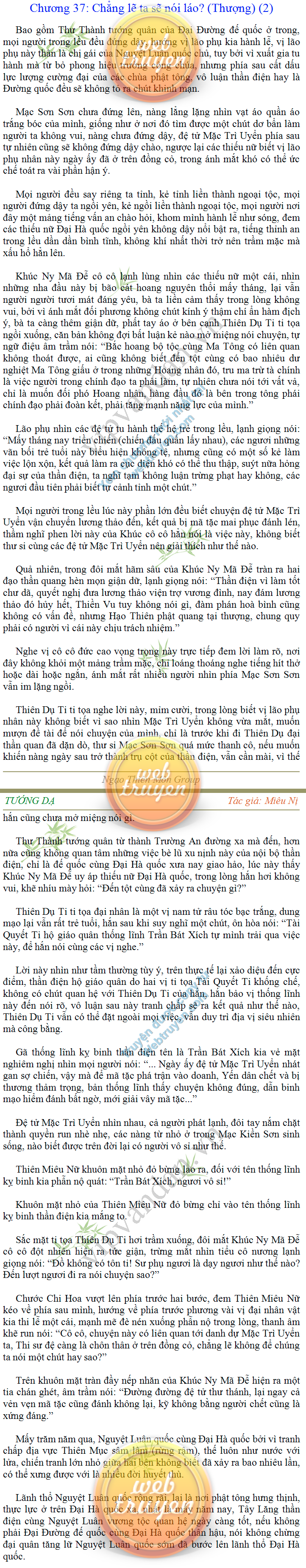 Tướng DạTruyện Converter, Truyện Huyền Huyễn, Truyện Kiếm Hiệp, Truyện Tiên HiệpTrên hoang nguyên trống trải bỗng xuất hiện ba người, cả ba đều không hẹn mà dừng chân dưới một thân cây còi cọc hiếm hoi, bọn họ không ai lên tiếng, chỉ im lặng cúi đầu nhìn xuống, tựa như dưới gốc cây có thứ gì đó rất thú vị, rất đáng để nghiên cứu và nghiền ngẫm. Hai đàn kiến vây kín quanh rễ cây màu nâu lộ ra trên mặt đất lạnh cóng tiến hành chiến tranh giành lãnh thổ, có lẽ vì trên mảnh hoang nguyên cằn cỗi vắng vẻ này chiếc rễ cây là một nơi trú ẩn tuyệt vời có một không hai nên trận chiến diễn ra hết sức khốc liệt, chỉ sau một lúc vài nghìn con kiến đã biến thành thi thể. Máu tanh là thế, nhưng thực tế trong mắt con người, vài nghìn xác kiến cũng chỉ là một mảng đen đen nhỏ xíu.Khí trời vẫn rất lạnh lẽo nhưng ba người đứng đó y phục lại khá mỏng manh, hình như họ không biết sợ lạnh là gì, cứ đứng bất động chăm chú quan sát. Không biết qua bao nhiêu lâu, bỗng một giọng khe khẽ cất lên:- Nước kiến nơi thế tục, đại đạo ra sao?Người vừa lên tiếng là một thiếu niên mặt mũi sáng sủa… *Chương này có nội dung ảnh, nếu bạn không thấy nội dung chương, vui lòng bật chế độ hiện hình ảnh của trình duyệt để đọc.