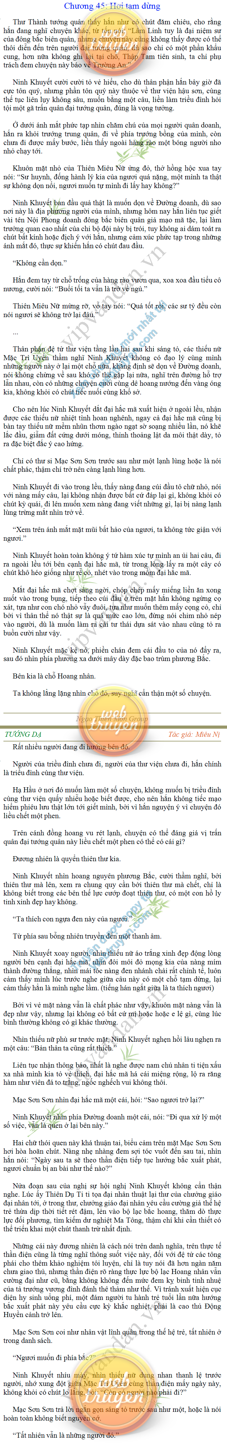 Tướng DạTruyện Converter, Truyện Huyền Huyễn, Truyện Kiếm Hiệp, Truyện Tiên HiệpTrên hoang nguyên trống trải bỗng xuất hiện ba người, cả ba đều không hẹn mà dừng chân dưới một thân cây còi cọc hiếm hoi, bọn họ không ai lên tiếng, chỉ im lặng cúi đầu nhìn xuống, tựa như dưới gốc cây có thứ gì đó rất thú vị, rất đáng để nghiên cứu và nghiền ngẫm. Hai đàn kiến vây kín quanh rễ cây màu nâu lộ ra trên mặt đất lạnh cóng tiến hành chiến tranh giành lãnh thổ, có lẽ vì trên mảnh hoang nguyên cằn cỗi vắng vẻ này chiếc rễ cây là một nơi trú ẩn tuyệt vời có một không hai nên trận chiến diễn ra hết sức khốc liệt, chỉ sau một lúc vài nghìn con kiến đã biến thành thi thể. Máu tanh là thế, nhưng thực tế trong mắt con người, vài nghìn xác kiến cũng chỉ là một mảng đen đen nhỏ xíu.Khí trời vẫn rất lạnh lẽo nhưng ba người đứng đó y phục lại khá mỏng manh, hình như họ không biết sợ lạnh là gì, cứ đứng bất động chăm chú quan sát. Không biết qua bao nhiêu lâu, bỗng một giọng khe khẽ cất lên:- Nước kiến nơi thế tục, đại đạo ra sao?Người vừa lên tiếng là một thiếu niên mặt mũi sáng sủa… *Chương này có nội dung ảnh, nếu bạn không thấy nội dung chương, vui lòng bật chế độ hiện hình ảnh của trình duyệt để đọc.