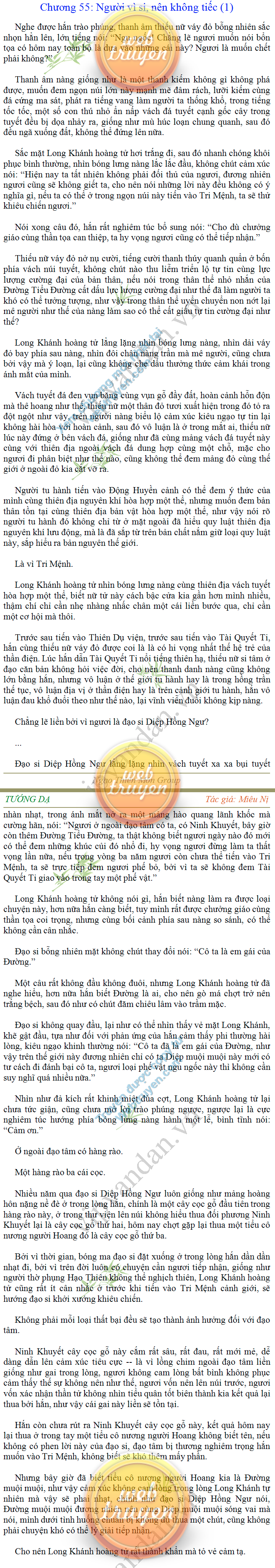 Tướng DạTruyện Converter, Truyện Huyền Huyễn, Truyện Kiếm Hiệp, Truyện Tiên HiệpTrên hoang nguyên trống trải bỗng xuất hiện ba người, cả ba đều không hẹn mà dừng chân dưới một thân cây còi cọc hiếm hoi, bọn họ không ai lên tiếng, chỉ im lặng cúi đầu nhìn xuống, tựa như dưới gốc cây có thứ gì đó rất thú vị, rất đáng để nghiên cứu và nghiền ngẫm. Hai đàn kiến vây kín quanh rễ cây màu nâu lộ ra trên mặt đất lạnh cóng tiến hành chiến tranh giành lãnh thổ, có lẽ vì trên mảnh hoang nguyên cằn cỗi vắng vẻ này chiếc rễ cây là một nơi trú ẩn tuyệt vời có một không hai nên trận chiến diễn ra hết sức khốc liệt, chỉ sau một lúc vài nghìn con kiến đã biến thành thi thể. Máu tanh là thế, nhưng thực tế trong mắt con người, vài nghìn xác kiến cũng chỉ là một mảng đen đen nhỏ xíu.Khí trời vẫn rất lạnh lẽo nhưng ba người đứng đó y phục lại khá mỏng manh, hình như họ không biết sợ lạnh là gì, cứ đứng bất động chăm chú quan sát. Không biết qua bao nhiêu lâu, bỗng một giọng khe khẽ cất lên:- Nước kiến nơi thế tục, đại đạo ra sao?Người vừa lên tiếng là một thiếu niên mặt mũi sáng sủa… *Chương này có nội dung ảnh, nếu bạn không thấy nội dung chương, vui lòng bật chế độ hiện hình ảnh của trình duyệt để đọc.