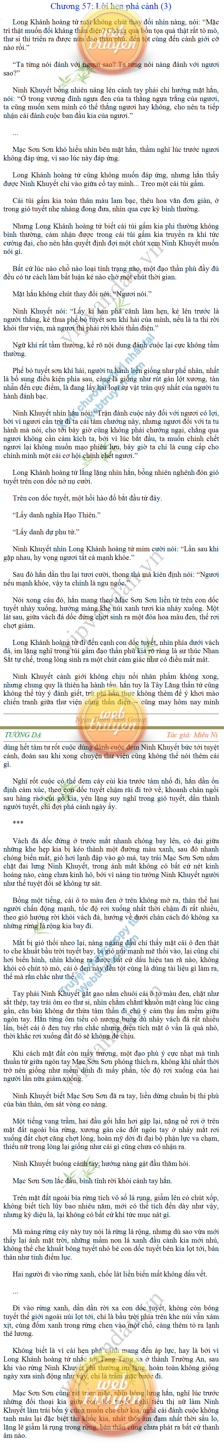 Tướng DạTruyện Converter, Truyện Huyền Huyễn, Truyện Kiếm Hiệp, Truyện Tiên HiệpTrên hoang nguyên trống trải bỗng xuất hiện ba người, cả ba đều không hẹn mà dừng chân dưới một thân cây còi cọc hiếm hoi, bọn họ không ai lên tiếng, chỉ im lặng cúi đầu nhìn xuống, tựa như dưới gốc cây có thứ gì đó rất thú vị, rất đáng để nghiên cứu và nghiền ngẫm. Hai đàn kiến vây kín quanh rễ cây màu nâu lộ ra trên mặt đất lạnh cóng tiến hành chiến tranh giành lãnh thổ, có lẽ vì trên mảnh hoang nguyên cằn cỗi vắng vẻ này chiếc rễ cây là một nơi trú ẩn tuyệt vời có một không hai nên trận chiến diễn ra hết sức khốc liệt, chỉ sau một lúc vài nghìn con kiến đã biến thành thi thể. Máu tanh là thế, nhưng thực tế trong mắt con người, vài nghìn xác kiến cũng chỉ là một mảng đen đen nhỏ xíu.Khí trời vẫn rất lạnh lẽo nhưng ba người đứng đó y phục lại khá mỏng manh, hình như họ không biết sợ lạnh là gì, cứ đứng bất động chăm chú quan sát. Không biết qua bao nhiêu lâu, bỗng một giọng khe khẽ cất lên:- Nước kiến nơi thế tục, đại đạo ra sao?Người vừa lên tiếng là một thiếu niên mặt mũi sáng sủa… *Chương này có nội dung ảnh, nếu bạn không thấy nội dung chương, vui lòng bật chế độ hiện hình ảnh của trình duyệt để đọc.