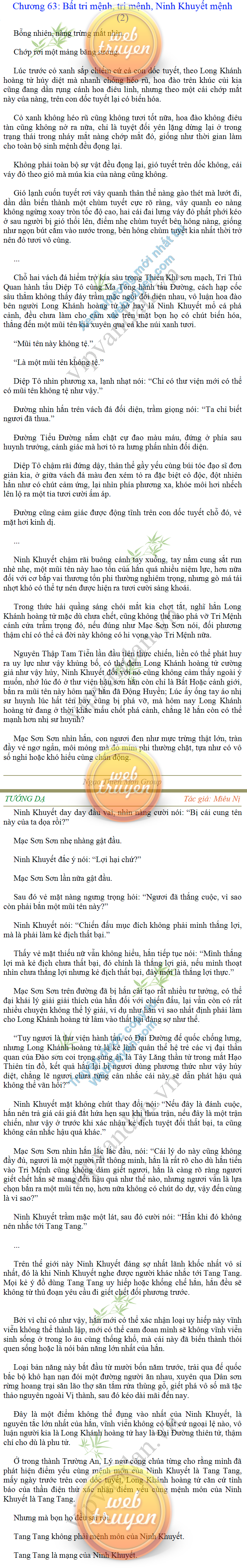 Tướng DạTruyện Converter, Truyện Huyền Huyễn, Truyện Kiếm Hiệp, Truyện Tiên HiệpTrên hoang nguyên trống trải bỗng xuất hiện ba người, cả ba đều không hẹn mà dừng chân dưới một thân cây còi cọc hiếm hoi, bọn họ không ai lên tiếng, chỉ im lặng cúi đầu nhìn xuống, tựa như dưới gốc cây có thứ gì đó rất thú vị, rất đáng để nghiên cứu và nghiền ngẫm. Hai đàn kiến vây kín quanh rễ cây màu nâu lộ ra trên mặt đất lạnh cóng tiến hành chiến tranh giành lãnh thổ, có lẽ vì trên mảnh hoang nguyên cằn cỗi vắng vẻ này chiếc rễ cây là một nơi trú ẩn tuyệt vời có một không hai nên trận chiến diễn ra hết sức khốc liệt, chỉ sau một lúc vài nghìn con kiến đã biến thành thi thể. Máu tanh là thế, nhưng thực tế trong mắt con người, vài nghìn xác kiến cũng chỉ là một mảng đen đen nhỏ xíu.Khí trời vẫn rất lạnh lẽo nhưng ba người đứng đó y phục lại khá mỏng manh, hình như họ không biết sợ lạnh là gì, cứ đứng bất động chăm chú quan sát. Không biết qua bao nhiêu lâu, bỗng một giọng khe khẽ cất lên:- Nước kiến nơi thế tục, đại đạo ra sao?Người vừa lên tiếng là một thiếu niên mặt mũi sáng sủa… *Chương này có nội dung ảnh, nếu bạn không thấy nội dung chương, vui lòng bật chế độ hiện hình ảnh của trình duyệt để đọc.