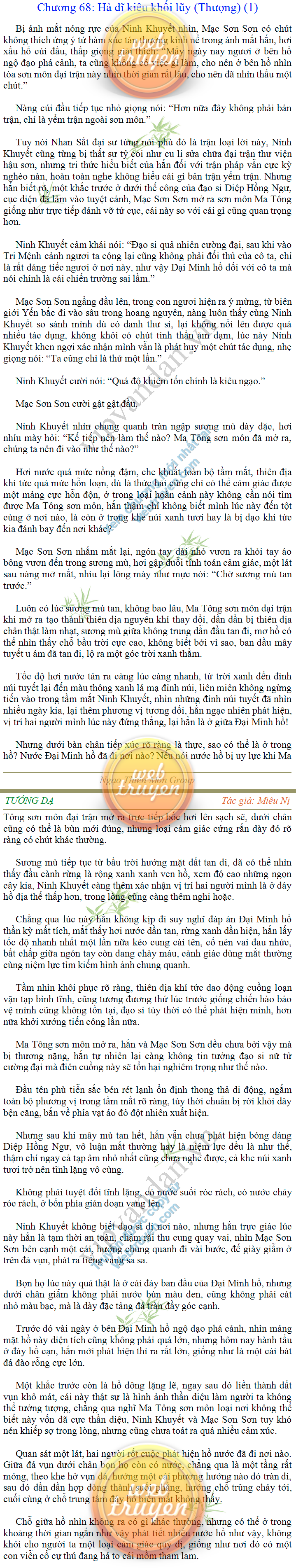 Tướng DạTruyện Converter, Truyện Huyền Huyễn, Truyện Kiếm Hiệp, Truyện Tiên HiệpTrên hoang nguyên trống trải bỗng xuất hiện ba người, cả ba đều không hẹn mà dừng chân dưới một thân cây còi cọc hiếm hoi, bọn họ không ai lên tiếng, chỉ im lặng cúi đầu nhìn xuống, tựa như dưới gốc cây có thứ gì đó rất thú vị, rất đáng để nghiên cứu và nghiền ngẫm. Hai đàn kiến vây kín quanh rễ cây màu nâu lộ ra trên mặt đất lạnh cóng tiến hành chiến tranh giành lãnh thổ, có lẽ vì trên mảnh hoang nguyên cằn cỗi vắng vẻ này chiếc rễ cây là một nơi trú ẩn tuyệt vời có một không hai nên trận chiến diễn ra hết sức khốc liệt, chỉ sau một lúc vài nghìn con kiến đã biến thành thi thể. Máu tanh là thế, nhưng thực tế trong mắt con người, vài nghìn xác kiến cũng chỉ là một mảng đen đen nhỏ xíu.Khí trời vẫn rất lạnh lẽo nhưng ba người đứng đó y phục lại khá mỏng manh, hình như họ không biết sợ lạnh là gì, cứ đứng bất động chăm chú quan sát. Không biết qua bao nhiêu lâu, bỗng một giọng khe khẽ cất lên:- Nước kiến nơi thế tục, đại đạo ra sao?Người vừa lên tiếng là một thiếu niên mặt mũi sáng sủa… *Chương này có nội dung ảnh, nếu bạn không thấy nội dung chương, vui lòng bật chế độ hiện hình ảnh của trình duyệt để đọc.