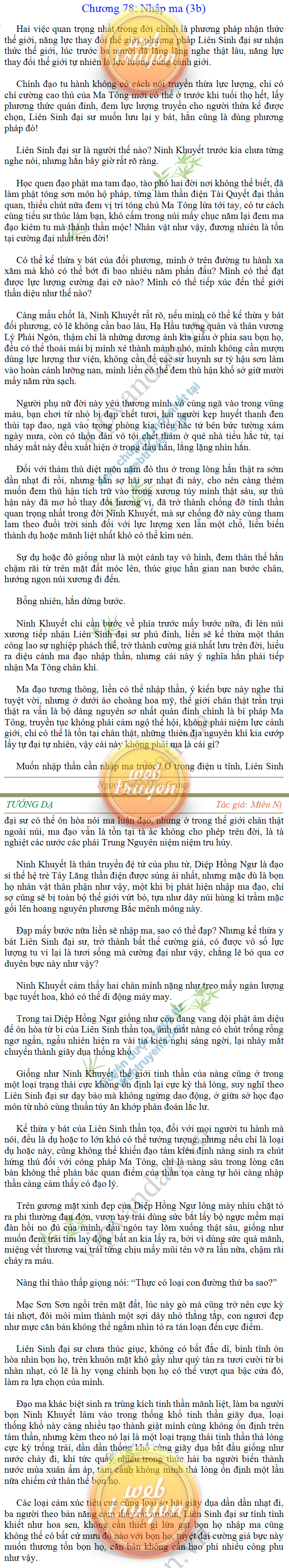 Tướng DạTruyện Converter, Truyện Huyền Huyễn, Truyện Kiếm Hiệp, Truyện Tiên HiệpTrên hoang nguyên trống trải bỗng xuất hiện ba người, cả ba đều không hẹn mà dừng chân dưới một thân cây còi cọc hiếm hoi, bọn họ không ai lên tiếng, chỉ im lặng cúi đầu nhìn xuống, tựa như dưới gốc cây có thứ gì đó rất thú vị, rất đáng để nghiên cứu và nghiền ngẫm. Hai đàn kiến vây kín quanh rễ cây màu nâu lộ ra trên mặt đất lạnh cóng tiến hành chiến tranh giành lãnh thổ, có lẽ vì trên mảnh hoang nguyên cằn cỗi vắng vẻ này chiếc rễ cây là một nơi trú ẩn tuyệt vời có một không hai nên trận chiến diễn ra hết sức khốc liệt, chỉ sau một lúc vài nghìn con kiến đã biến thành thi thể. Máu tanh là thế, nhưng thực tế trong mắt con người, vài nghìn xác kiến cũng chỉ là một mảng đen đen nhỏ xíu.Khí trời vẫn rất lạnh lẽo nhưng ba người đứng đó y phục lại khá mỏng manh, hình như họ không biết sợ lạnh là gì, cứ đứng bất động chăm chú quan sát. Không biết qua bao nhiêu lâu, bỗng một giọng khe khẽ cất lên:- Nước kiến nơi thế tục, đại đạo ra sao?Người vừa lên tiếng là một thiếu niên mặt mũi sáng sủa… *Chương này có nội dung ảnh, nếu bạn không thấy nội dung chương, vui lòng bật chế độ hiện hình ảnh của trình duyệt để đọc.