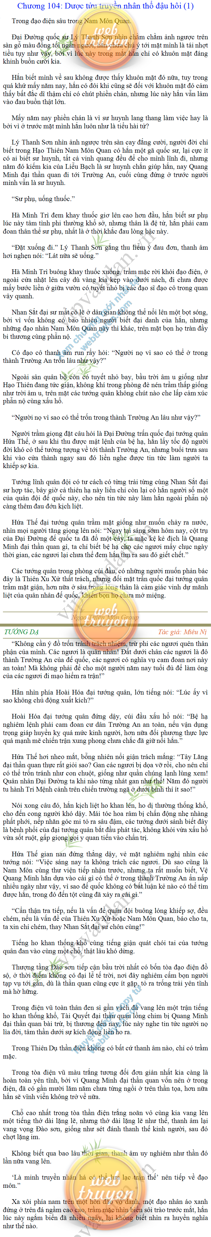 Tướng DạTruyện Converter, Truyện Huyền Huyễn, Truyện Kiếm Hiệp, Truyện Tiên HiệpTrên hoang nguyên trống trải bỗng xuất hiện ba người, cả ba đều không hẹn mà dừng chân dưới một thân cây còi cọc hiếm hoi, bọn họ không ai lên tiếng, chỉ im lặng cúi đầu nhìn xuống, tựa như dưới gốc cây có thứ gì đó rất thú vị, rất đáng để nghiên cứu và nghiền ngẫm. Hai đàn kiến vây kín quanh rễ cây màu nâu lộ ra trên mặt đất lạnh cóng tiến hành chiến tranh giành lãnh thổ, có lẽ vì trên mảnh hoang nguyên cằn cỗi vắng vẻ này chiếc rễ cây là một nơi trú ẩn tuyệt vời có một không hai nên trận chiến diễn ra hết sức khốc liệt, chỉ sau một lúc vài nghìn con kiến đã biến thành thi thể. Máu tanh là thế, nhưng thực tế trong mắt con người, vài nghìn xác kiến cũng chỉ là một mảng đen đen nhỏ xíu.Khí trời vẫn rất lạnh lẽo nhưng ba người đứng đó y phục lại khá mỏng manh, hình như họ không biết sợ lạnh là gì, cứ đứng bất động chăm chú quan sát. Không biết qua bao nhiêu lâu, bỗng một giọng khe khẽ cất lên:- Nước kiến nơi thế tục, đại đạo ra sao?Người vừa lên tiếng là một thiếu niên mặt mũi sáng sủa… *Chương này có nội dung ảnh, nếu bạn không thấy nội dung chương, vui lòng bật chế độ hiện hình ảnh của trình duyệt để đọc.