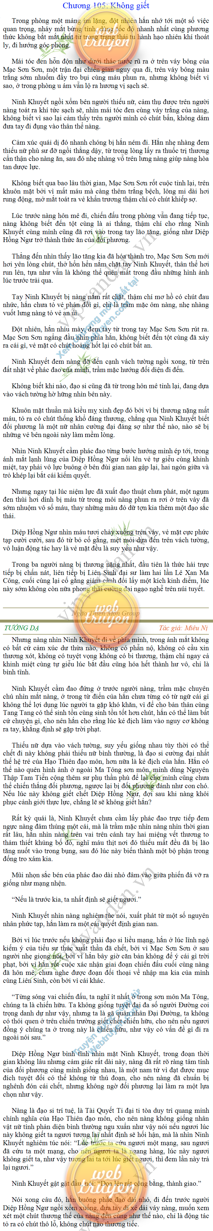 Tướng DạTruyện Converter, Truyện Huyền Huyễn, Truyện Kiếm Hiệp, Truyện Tiên HiệpTrên hoang nguyên trống trải bỗng xuất hiện ba người, cả ba đều không hẹn mà dừng chân dưới một thân cây còi cọc hiếm hoi, bọn họ không ai lên tiếng, chỉ im lặng cúi đầu nhìn xuống, tựa như dưới gốc cây có thứ gì đó rất thú vị, rất đáng để nghiên cứu và nghiền ngẫm. Hai đàn kiến vây kín quanh rễ cây màu nâu lộ ra trên mặt đất lạnh cóng tiến hành chiến tranh giành lãnh thổ, có lẽ vì trên mảnh hoang nguyên cằn cỗi vắng vẻ này chiếc rễ cây là một nơi trú ẩn tuyệt vời có một không hai nên trận chiến diễn ra hết sức khốc liệt, chỉ sau một lúc vài nghìn con kiến đã biến thành thi thể. Máu tanh là thế, nhưng thực tế trong mắt con người, vài nghìn xác kiến cũng chỉ là một mảng đen đen nhỏ xíu.Khí trời vẫn rất lạnh lẽo nhưng ba người đứng đó y phục lại khá mỏng manh, hình như họ không biết sợ lạnh là gì, cứ đứng bất động chăm chú quan sát. Không biết qua bao nhiêu lâu, bỗng một giọng khe khẽ cất lên:- Nước kiến nơi thế tục, đại đạo ra sao?Người vừa lên tiếng là một thiếu niên mặt mũi sáng sủa… *Chương này có nội dung ảnh, nếu bạn không thấy nội dung chương, vui lòng bật chế độ hiện hình ảnh của trình duyệt để đọc.