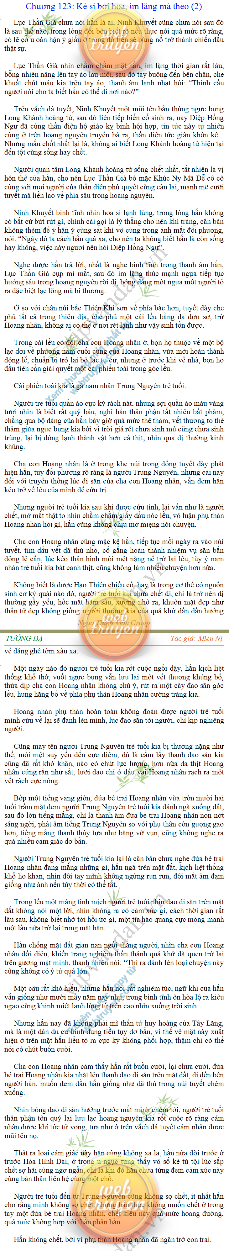 Tướng DạTruyện Converter, Truyện Huyền Huyễn, Truyện Kiếm Hiệp, Truyện Tiên HiệpTrên hoang nguyên trống trải bỗng xuất hiện ba người, cả ba đều không hẹn mà dừng chân dưới một thân cây còi cọc hiếm hoi, bọn họ không ai lên tiếng, chỉ im lặng cúi đầu nhìn xuống, tựa như dưới gốc cây có thứ gì đó rất thú vị, rất đáng để nghiên cứu và nghiền ngẫm. Hai đàn kiến vây kín quanh rễ cây màu nâu lộ ra trên mặt đất lạnh cóng tiến hành chiến tranh giành lãnh thổ, có lẽ vì trên mảnh hoang nguyên cằn cỗi vắng vẻ này chiếc rễ cây là một nơi trú ẩn tuyệt vời có một không hai nên trận chiến diễn ra hết sức khốc liệt, chỉ sau một lúc vài nghìn con kiến đã biến thành thi thể. Máu tanh là thế, nhưng thực tế trong mắt con người, vài nghìn xác kiến cũng chỉ là một mảng đen đen nhỏ xíu.Khí trời vẫn rất lạnh lẽo nhưng ba người đứng đó y phục lại khá mỏng manh, hình như họ không biết sợ lạnh là gì, cứ đứng bất động chăm chú quan sát. Không biết qua bao nhiêu lâu, bỗng một giọng khe khẽ cất lên:- Nước kiến nơi thế tục, đại đạo ra sao?Người vừa lên tiếng là một thiếu niên mặt mũi sáng sủa… *Chương này có nội dung ảnh, nếu bạn không thấy nội dung chương, vui lòng bật chế độ hiện hình ảnh của trình duyệt để đọc.