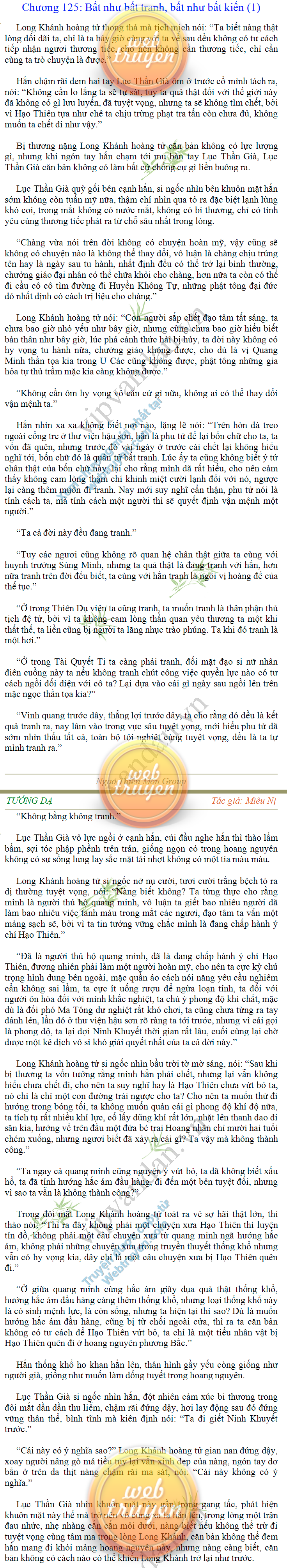 Tướng DạTruyện Converter, Truyện Huyền Huyễn, Truyện Kiếm Hiệp, Truyện Tiên HiệpTrên hoang nguyên trống trải bỗng xuất hiện ba người, cả ba đều không hẹn mà dừng chân dưới một thân cây còi cọc hiếm hoi, bọn họ không ai lên tiếng, chỉ im lặng cúi đầu nhìn xuống, tựa như dưới gốc cây có thứ gì đó rất thú vị, rất đáng để nghiên cứu và nghiền ngẫm. Hai đàn kiến vây kín quanh rễ cây màu nâu lộ ra trên mặt đất lạnh cóng tiến hành chiến tranh giành lãnh thổ, có lẽ vì trên mảnh hoang nguyên cằn cỗi vắng vẻ này chiếc rễ cây là một nơi trú ẩn tuyệt vời có một không hai nên trận chiến diễn ra hết sức khốc liệt, chỉ sau một lúc vài nghìn con kiến đã biến thành thi thể. Máu tanh là thế, nhưng thực tế trong mắt con người, vài nghìn xác kiến cũng chỉ là một mảng đen đen nhỏ xíu.Khí trời vẫn rất lạnh lẽo nhưng ba người đứng đó y phục lại khá mỏng manh, hình như họ không biết sợ lạnh là gì, cứ đứng bất động chăm chú quan sát. Không biết qua bao nhiêu lâu, bỗng một giọng khe khẽ cất lên:- Nước kiến nơi thế tục, đại đạo ra sao?Người vừa lên tiếng là một thiếu niên mặt mũi sáng sủa… *Chương này có nội dung ảnh, nếu bạn không thấy nội dung chương, vui lòng bật chế độ hiện hình ảnh của trình duyệt để đọc.