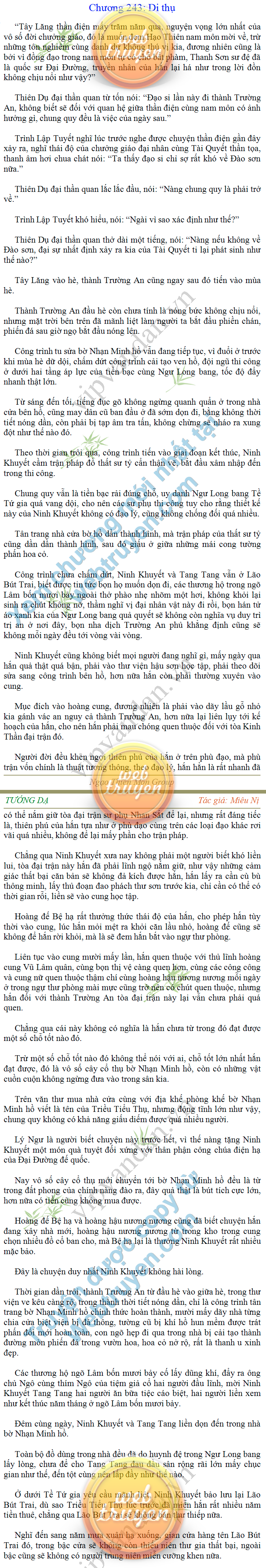 Tướng DạTruyện Converter, Truyện Huyền Huyễn, Truyện Kiếm Hiệp, Truyện Tiên HiệpTrên hoang nguyên trống trải bỗng xuất hiện ba người, cả ba đều không hẹn mà dừng chân dưới một thân cây còi cọc hiếm hoi, bọn họ không ai lên tiếng, chỉ im lặng cúi đầu nhìn xuống, tựa như dưới gốc cây có thứ gì đó rất thú vị, rất đáng để nghiên cứu và nghiền ngẫm. Hai đàn kiến vây kín quanh rễ cây màu nâu lộ ra trên mặt đất lạnh cóng tiến hành chiến tranh giành lãnh thổ, có lẽ vì trên mảnh hoang nguyên cằn cỗi vắng vẻ này chiếc rễ cây là một nơi trú ẩn tuyệt vời có một không hai nên trận chiến diễn ra hết sức khốc liệt, chỉ sau một lúc vài nghìn con kiến đã biến thành thi thể. Máu tanh là thế, nhưng thực tế trong mắt con người, vài nghìn xác kiến cũng chỉ là một mảng đen đen nhỏ xíu.Khí trời vẫn rất lạnh lẽo nhưng ba người đứng đó y phục lại khá mỏng manh, hình như họ không biết sợ lạnh là gì, cứ đứng bất động chăm chú quan sát. Không biết qua bao nhiêu lâu, bỗng một giọng khe khẽ cất lên:- Nước kiến nơi thế tục, đại đạo ra sao?Người vừa lên tiếng là một thiếu niên mặt mũi sáng sủa… *Chương này có nội dung ảnh, nếu bạn không thấy nội dung chương, vui lòng bật chế độ hiện hình ảnh của trình duyệt để đọc.