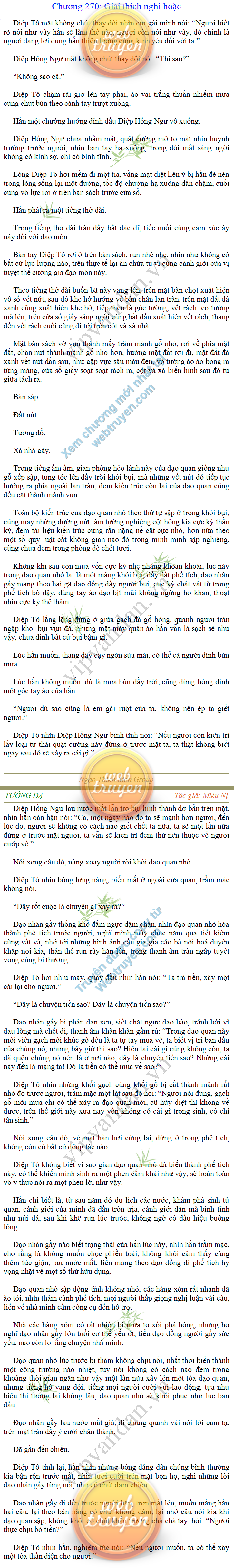 Tướng DạTruyện Converter, Truyện Huyền Huyễn, Truyện Kiếm Hiệp, Truyện Tiên HiệpTrên hoang nguyên trống trải bỗng xuất hiện ba người, cả ba đều không hẹn mà dừng chân dưới một thân cây còi cọc hiếm hoi, bọn họ không ai lên tiếng, chỉ im lặng cúi đầu nhìn xuống, tựa như dưới gốc cây có thứ gì đó rất thú vị, rất đáng để nghiên cứu và nghiền ngẫm. Hai đàn kiến vây kín quanh rễ cây màu nâu lộ ra trên mặt đất lạnh cóng tiến hành chiến tranh giành lãnh thổ, có lẽ vì trên mảnh hoang nguyên cằn cỗi vắng vẻ này chiếc rễ cây là một nơi trú ẩn tuyệt vời có một không hai nên trận chiến diễn ra hết sức khốc liệt, chỉ sau một lúc vài nghìn con kiến đã biến thành thi thể. Máu tanh là thế, nhưng thực tế trong mắt con người, vài nghìn xác kiến cũng chỉ là một mảng đen đen nhỏ xíu.Khí trời vẫn rất lạnh lẽo nhưng ba người đứng đó y phục lại khá mỏng manh, hình như họ không biết sợ lạnh là gì, cứ đứng bất động chăm chú quan sát. Không biết qua bao nhiêu lâu, bỗng một giọng khe khẽ cất lên:- Nước kiến nơi thế tục, đại đạo ra sao?Người vừa lên tiếng là một thiếu niên mặt mũi sáng sủa… *Chương này có nội dung ảnh, nếu bạn không thấy nội dung chương, vui lòng bật chế độ hiện hình ảnh của trình duyệt để đọc.