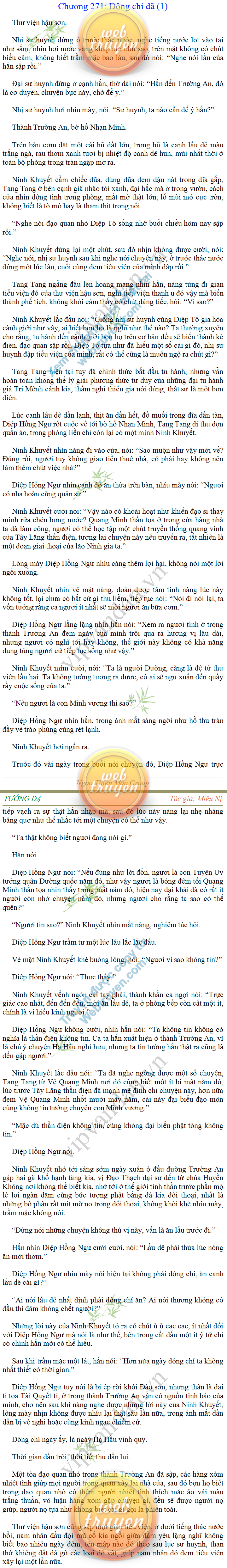 Tướng DạTruyện Converter, Truyện Huyền Huyễn, Truyện Kiếm Hiệp, Truyện Tiên HiệpTrên hoang nguyên trống trải bỗng xuất hiện ba người, cả ba đều không hẹn mà dừng chân dưới một thân cây còi cọc hiếm hoi, bọn họ không ai lên tiếng, chỉ im lặng cúi đầu nhìn xuống, tựa như dưới gốc cây có thứ gì đó rất thú vị, rất đáng để nghiên cứu và nghiền ngẫm. Hai đàn kiến vây kín quanh rễ cây màu nâu lộ ra trên mặt đất lạnh cóng tiến hành chiến tranh giành lãnh thổ, có lẽ vì trên mảnh hoang nguyên cằn cỗi vắng vẻ này chiếc rễ cây là một nơi trú ẩn tuyệt vời có một không hai nên trận chiến diễn ra hết sức khốc liệt, chỉ sau một lúc vài nghìn con kiến đã biến thành thi thể. Máu tanh là thế, nhưng thực tế trong mắt con người, vài nghìn xác kiến cũng chỉ là một mảng đen đen nhỏ xíu.Khí trời vẫn rất lạnh lẽo nhưng ba người đứng đó y phục lại khá mỏng manh, hình như họ không biết sợ lạnh là gì, cứ đứng bất động chăm chú quan sát. Không biết qua bao nhiêu lâu, bỗng một giọng khe khẽ cất lên:- Nước kiến nơi thế tục, đại đạo ra sao?Người vừa lên tiếng là một thiếu niên mặt mũi sáng sủa… *Chương này có nội dung ảnh, nếu bạn không thấy nội dung chương, vui lòng bật chế độ hiện hình ảnh của trình duyệt để đọc.