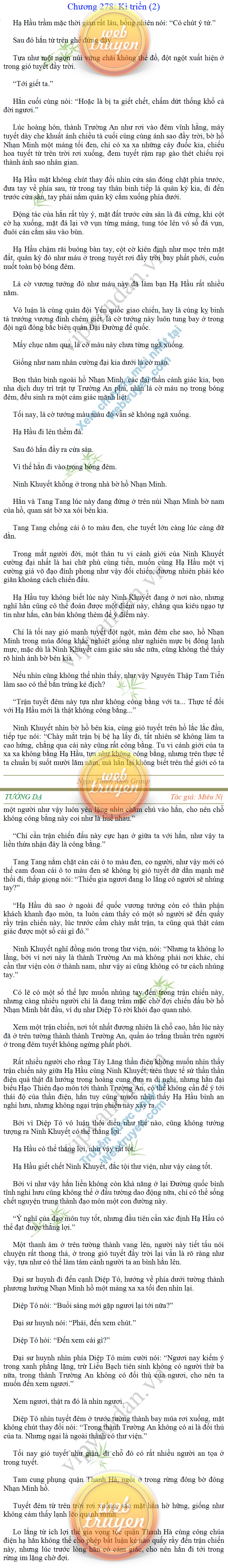 Tướng DạTruyện Converter, Truyện Huyền Huyễn, Truyện Kiếm Hiệp, Truyện Tiên HiệpTrên hoang nguyên trống trải bỗng xuất hiện ba người, cả ba đều không hẹn mà dừng chân dưới một thân cây còi cọc hiếm hoi, bọn họ không ai lên tiếng, chỉ im lặng cúi đầu nhìn xuống, tựa như dưới gốc cây có thứ gì đó rất thú vị, rất đáng để nghiên cứu và nghiền ngẫm. Hai đàn kiến vây kín quanh rễ cây màu nâu lộ ra trên mặt đất lạnh cóng tiến hành chiến tranh giành lãnh thổ, có lẽ vì trên mảnh hoang nguyên cằn cỗi vắng vẻ này chiếc rễ cây là một nơi trú ẩn tuyệt vời có một không hai nên trận chiến diễn ra hết sức khốc liệt, chỉ sau một lúc vài nghìn con kiến đã biến thành thi thể. Máu tanh là thế, nhưng thực tế trong mắt con người, vài nghìn xác kiến cũng chỉ là một mảng đen đen nhỏ xíu.Khí trời vẫn rất lạnh lẽo nhưng ba người đứng đó y phục lại khá mỏng manh, hình như họ không biết sợ lạnh là gì, cứ đứng bất động chăm chú quan sát. Không biết qua bao nhiêu lâu, bỗng một giọng khe khẽ cất lên:- Nước kiến nơi thế tục, đại đạo ra sao?Người vừa lên tiếng là một thiếu niên mặt mũi sáng sủa… *Chương này có nội dung ảnh, nếu bạn không thấy nội dung chương, vui lòng bật chế độ hiện hình ảnh của trình duyệt để đọc.