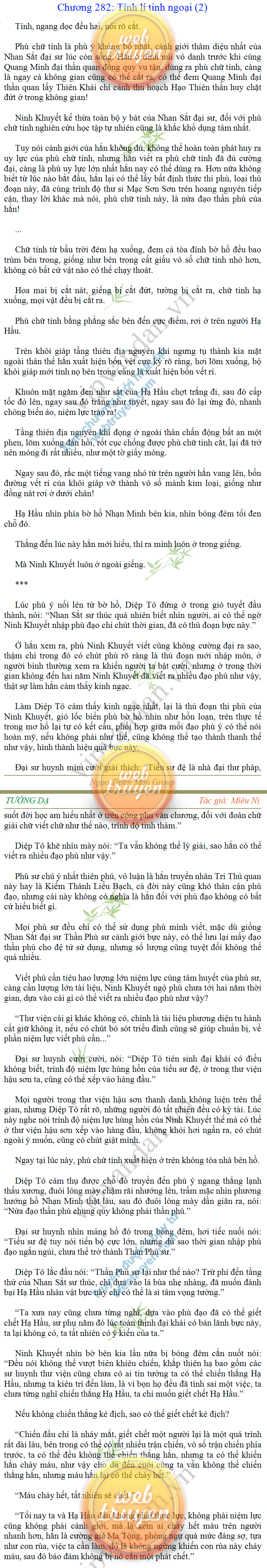 Tướng DạTruyện Converter, Truyện Huyền Huyễn, Truyện Kiếm Hiệp, Truyện Tiên HiệpTrên hoang nguyên trống trải bỗng xuất hiện ba người, cả ba đều không hẹn mà dừng chân dưới một thân cây còi cọc hiếm hoi, bọn họ không ai lên tiếng, chỉ im lặng cúi đầu nhìn xuống, tựa như dưới gốc cây có thứ gì đó rất thú vị, rất đáng để nghiên cứu và nghiền ngẫm. Hai đàn kiến vây kín quanh rễ cây màu nâu lộ ra trên mặt đất lạnh cóng tiến hành chiến tranh giành lãnh thổ, có lẽ vì trên mảnh hoang nguyên cằn cỗi vắng vẻ này chiếc rễ cây là một nơi trú ẩn tuyệt vời có một không hai nên trận chiến diễn ra hết sức khốc liệt, chỉ sau một lúc vài nghìn con kiến đã biến thành thi thể. Máu tanh là thế, nhưng thực tế trong mắt con người, vài nghìn xác kiến cũng chỉ là một mảng đen đen nhỏ xíu.Khí trời vẫn rất lạnh lẽo nhưng ba người đứng đó y phục lại khá mỏng manh, hình như họ không biết sợ lạnh là gì, cứ đứng bất động chăm chú quan sát. Không biết qua bao nhiêu lâu, bỗng một giọng khe khẽ cất lên:- Nước kiến nơi thế tục, đại đạo ra sao?Người vừa lên tiếng là một thiếu niên mặt mũi sáng sủa… *Chương này có nội dung ảnh, nếu bạn không thấy nội dung chương, vui lòng bật chế độ hiện hình ảnh của trình duyệt để đọc.