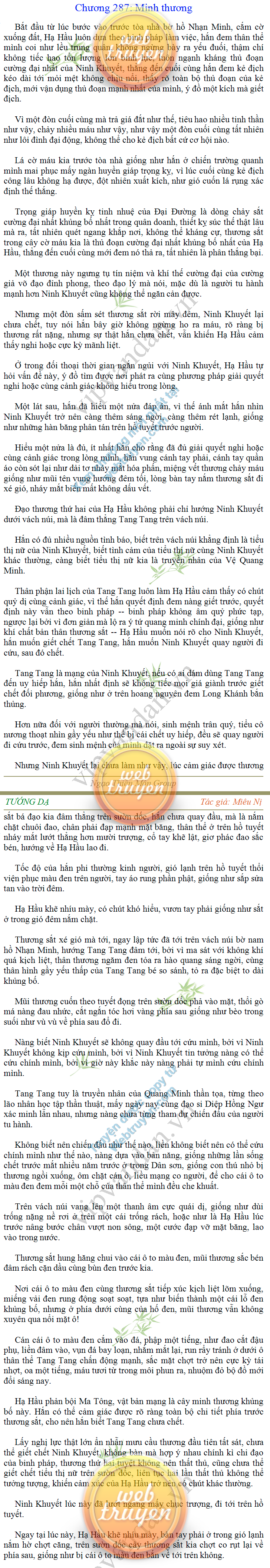 Tướng DạTruyện Converter, Truyện Huyền Huyễn, Truyện Kiếm Hiệp, Truyện Tiên HiệpTrên hoang nguyên trống trải bỗng xuất hiện ba người, cả ba đều không hẹn mà dừng chân dưới một thân cây còi cọc hiếm hoi, bọn họ không ai lên tiếng, chỉ im lặng cúi đầu nhìn xuống, tựa như dưới gốc cây có thứ gì đó rất thú vị, rất đáng để nghiên cứu và nghiền ngẫm. Hai đàn kiến vây kín quanh rễ cây màu nâu lộ ra trên mặt đất lạnh cóng tiến hành chiến tranh giành lãnh thổ, có lẽ vì trên mảnh hoang nguyên cằn cỗi vắng vẻ này chiếc rễ cây là một nơi trú ẩn tuyệt vời có một không hai nên trận chiến diễn ra hết sức khốc liệt, chỉ sau một lúc vài nghìn con kiến đã biến thành thi thể. Máu tanh là thế, nhưng thực tế trong mắt con người, vài nghìn xác kiến cũng chỉ là một mảng đen đen nhỏ xíu.Khí trời vẫn rất lạnh lẽo nhưng ba người đứng đó y phục lại khá mỏng manh, hình như họ không biết sợ lạnh là gì, cứ đứng bất động chăm chú quan sát. Không biết qua bao nhiêu lâu, bỗng một giọng khe khẽ cất lên:- Nước kiến nơi thế tục, đại đạo ra sao?Người vừa lên tiếng là một thiếu niên mặt mũi sáng sủa… *Chương này có nội dung ảnh, nếu bạn không thấy nội dung chương, vui lòng bật chế độ hiện hình ảnh của trình duyệt để đọc.