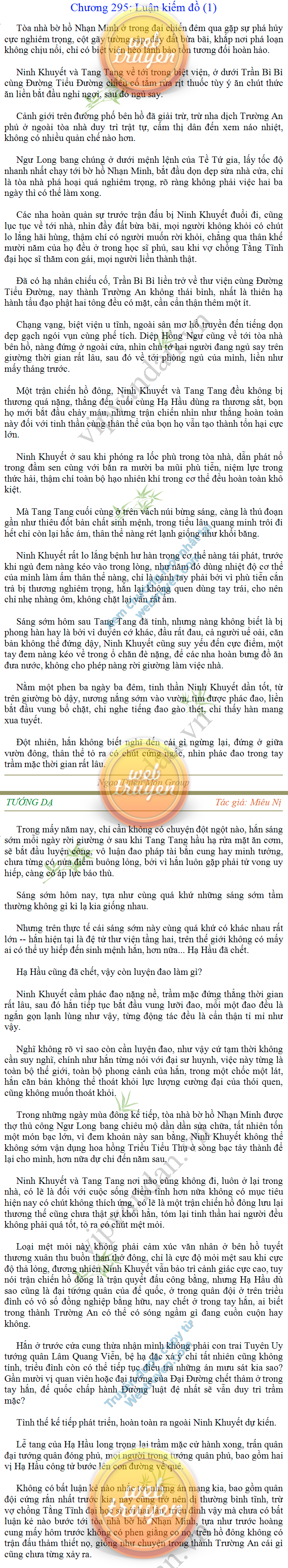 Tướng DạTruyện Converter, Truyện Huyền Huyễn, Truyện Kiếm Hiệp, Truyện Tiên HiệpTrên hoang nguyên trống trải bỗng xuất hiện ba người, cả ba đều không hẹn mà dừng chân dưới một thân cây còi cọc hiếm hoi, bọn họ không ai lên tiếng, chỉ im lặng cúi đầu nhìn xuống, tựa như dưới gốc cây có thứ gì đó rất thú vị, rất đáng để nghiên cứu và nghiền ngẫm. Hai đàn kiến vây kín quanh rễ cây màu nâu lộ ra trên mặt đất lạnh cóng tiến hành chiến tranh giành lãnh thổ, có lẽ vì trên mảnh hoang nguyên cằn cỗi vắng vẻ này chiếc rễ cây là một nơi trú ẩn tuyệt vời có một không hai nên trận chiến diễn ra hết sức khốc liệt, chỉ sau một lúc vài nghìn con kiến đã biến thành thi thể. Máu tanh là thế, nhưng thực tế trong mắt con người, vài nghìn xác kiến cũng chỉ là một mảng đen đen nhỏ xíu.Khí trời vẫn rất lạnh lẽo nhưng ba người đứng đó y phục lại khá mỏng manh, hình như họ không biết sợ lạnh là gì, cứ đứng bất động chăm chú quan sát. Không biết qua bao nhiêu lâu, bỗng một giọng khe khẽ cất lên:- Nước kiến nơi thế tục, đại đạo ra sao?Người vừa lên tiếng là một thiếu niên mặt mũi sáng sủa… *Chương này có nội dung ảnh, nếu bạn không thấy nội dung chương, vui lòng bật chế độ hiện hình ảnh của trình duyệt để đọc.