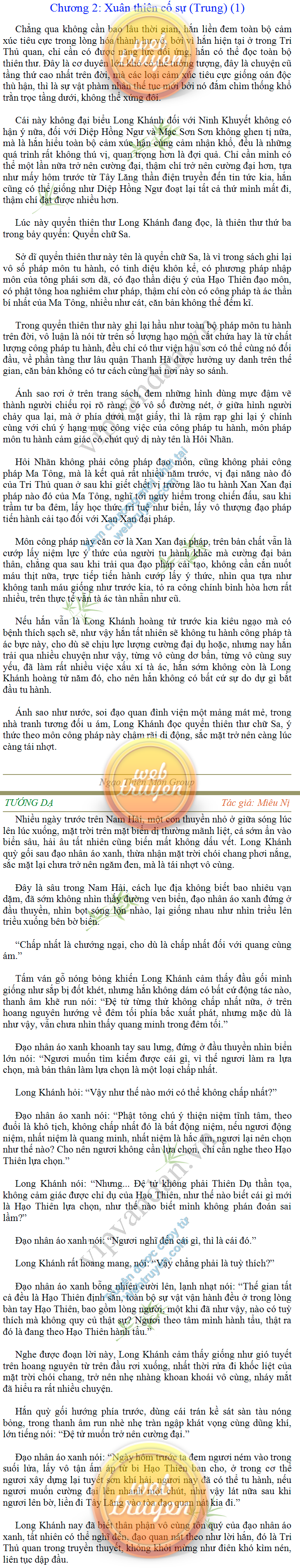 Tướng DạTruyện Converter, Truyện Huyền Huyễn, Truyện Kiếm Hiệp, Truyện Tiên HiệpTrên hoang nguyên trống trải bỗng xuất hiện ba người, cả ba đều không hẹn mà dừng chân dưới một thân cây còi cọc hiếm hoi, bọn họ không ai lên tiếng, chỉ im lặng cúi đầu nhìn xuống, tựa như dưới gốc cây có thứ gì đó rất thú vị, rất đáng để nghiên cứu và nghiền ngẫm. Hai đàn kiến vây kín quanh rễ cây màu nâu lộ ra trên mặt đất lạnh cóng tiến hành chiến tranh giành lãnh thổ, có lẽ vì trên mảnh hoang nguyên cằn cỗi vắng vẻ này chiếc rễ cây là một nơi trú ẩn tuyệt vời có một không hai nên trận chiến diễn ra hết sức khốc liệt, chỉ sau một lúc vài nghìn con kiến đã biến thành thi thể. Máu tanh là thế, nhưng thực tế trong mắt con người, vài nghìn xác kiến cũng chỉ là một mảng đen đen nhỏ xíu.Khí trời vẫn rất lạnh lẽo nhưng ba người đứng đó y phục lại khá mỏng manh, hình như họ không biết sợ lạnh là gì, cứ đứng bất động chăm chú quan sát. Không biết qua bao nhiêu lâu, bỗng một giọng khe khẽ cất lên:- Nước kiến nơi thế tục, đại đạo ra sao?Người vừa lên tiếng là một thiếu niên mặt mũi sáng sủa… *Chương này có nội dung ảnh, nếu bạn không thấy nội dung chương, vui lòng bật chế độ hiện hình ảnh của trình duyệt để đọc.