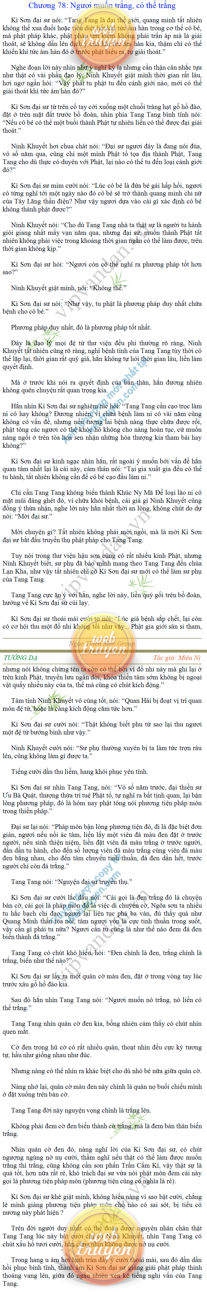 Tướng DạTruyện Converter, Truyện Huyền Huyễn, Truyện Kiếm Hiệp, Truyện Tiên HiệpTrên hoang nguyên trống trải bỗng xuất hiện ba người, cả ba đều không hẹn mà dừng chân dưới một thân cây còi cọc hiếm hoi, bọn họ không ai lên tiếng, chỉ im lặng cúi đầu nhìn xuống, tựa như dưới gốc cây có thứ gì đó rất thú vị, rất đáng để nghiên cứu và nghiền ngẫm. Hai đàn kiến vây kín quanh rễ cây màu nâu lộ ra trên mặt đất lạnh cóng tiến hành chiến tranh giành lãnh thổ, có lẽ vì trên mảnh hoang nguyên cằn cỗi vắng vẻ này chiếc rễ cây là một nơi trú ẩn tuyệt vời có một không hai nên trận chiến diễn ra hết sức khốc liệt, chỉ sau một lúc vài nghìn con kiến đã biến thành thi thể. Máu tanh là thế, nhưng thực tế trong mắt con người, vài nghìn xác kiến cũng chỉ là một mảng đen đen nhỏ xíu.Khí trời vẫn rất lạnh lẽo nhưng ba người đứng đó y phục lại khá mỏng manh, hình như họ không biết sợ lạnh là gì, cứ đứng bất động chăm chú quan sát. Không biết qua bao nhiêu lâu, bỗng một giọng khe khẽ cất lên:- Nước kiến nơi thế tục, đại đạo ra sao?Người vừa lên tiếng là một thiếu niên mặt mũi sáng sủa… *Chương này có nội dung ảnh, nếu bạn không thấy nội dung chương, vui lòng bật chế độ hiện hình ảnh của trình duyệt để đọc.