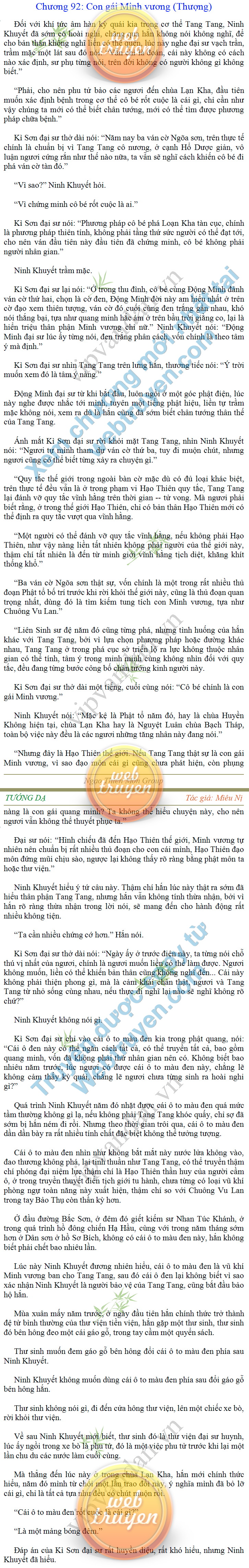 Tướng DạTruyện Converter, Truyện Huyền Huyễn, Truyện Kiếm Hiệp, Truyện Tiên HiệpTrên hoang nguyên trống trải bỗng xuất hiện ba người, cả ba đều không hẹn mà dừng chân dưới một thân cây còi cọc hiếm hoi, bọn họ không ai lên tiếng, chỉ im lặng cúi đầu nhìn xuống, tựa như dưới gốc cây có thứ gì đó rất thú vị, rất đáng để nghiên cứu và nghiền ngẫm. Hai đàn kiến vây kín quanh rễ cây màu nâu lộ ra trên mặt đất lạnh cóng tiến hành chiến tranh giành lãnh thổ, có lẽ vì trên mảnh hoang nguyên cằn cỗi vắng vẻ này chiếc rễ cây là một nơi trú ẩn tuyệt vời có một không hai nên trận chiến diễn ra hết sức khốc liệt, chỉ sau một lúc vài nghìn con kiến đã biến thành thi thể. Máu tanh là thế, nhưng thực tế trong mắt con người, vài nghìn xác kiến cũng chỉ là một mảng đen đen nhỏ xíu.Khí trời vẫn rất lạnh lẽo nhưng ba người đứng đó y phục lại khá mỏng manh, hình như họ không biết sợ lạnh là gì, cứ đứng bất động chăm chú quan sát. Không biết qua bao nhiêu lâu, bỗng một giọng khe khẽ cất lên:- Nước kiến nơi thế tục, đại đạo ra sao?Người vừa lên tiếng là một thiếu niên mặt mũi sáng sủa… *Chương này có nội dung ảnh, nếu bạn không thấy nội dung chương, vui lòng bật chế độ hiện hình ảnh của trình duyệt để đọc.