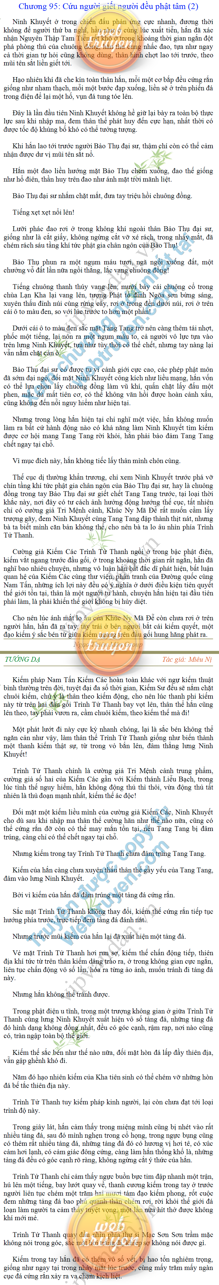 Tướng DạTruyện Converter, Truyện Huyền Huyễn, Truyện Kiếm Hiệp, Truyện Tiên HiệpTrên hoang nguyên trống trải bỗng xuất hiện ba người, cả ba đều không hẹn mà dừng chân dưới một thân cây còi cọc hiếm hoi, bọn họ không ai lên tiếng, chỉ im lặng cúi đầu nhìn xuống, tựa như dưới gốc cây có thứ gì đó rất thú vị, rất đáng để nghiên cứu và nghiền ngẫm. Hai đàn kiến vây kín quanh rễ cây màu nâu lộ ra trên mặt đất lạnh cóng tiến hành chiến tranh giành lãnh thổ, có lẽ vì trên mảnh hoang nguyên cằn cỗi vắng vẻ này chiếc rễ cây là một nơi trú ẩn tuyệt vời có một không hai nên trận chiến diễn ra hết sức khốc liệt, chỉ sau một lúc vài nghìn con kiến đã biến thành thi thể. Máu tanh là thế, nhưng thực tế trong mắt con người, vài nghìn xác kiến cũng chỉ là một mảng đen đen nhỏ xíu.Khí trời vẫn rất lạnh lẽo nhưng ba người đứng đó y phục lại khá mỏng manh, hình như họ không biết sợ lạnh là gì, cứ đứng bất động chăm chú quan sát. Không biết qua bao nhiêu lâu, bỗng một giọng khe khẽ cất lên:- Nước kiến nơi thế tục, đại đạo ra sao?Người vừa lên tiếng là một thiếu niên mặt mũi sáng sủa… *Chương này có nội dung ảnh, nếu bạn không thấy nội dung chương, vui lòng bật chế độ hiện hình ảnh của trình duyệt để đọc.