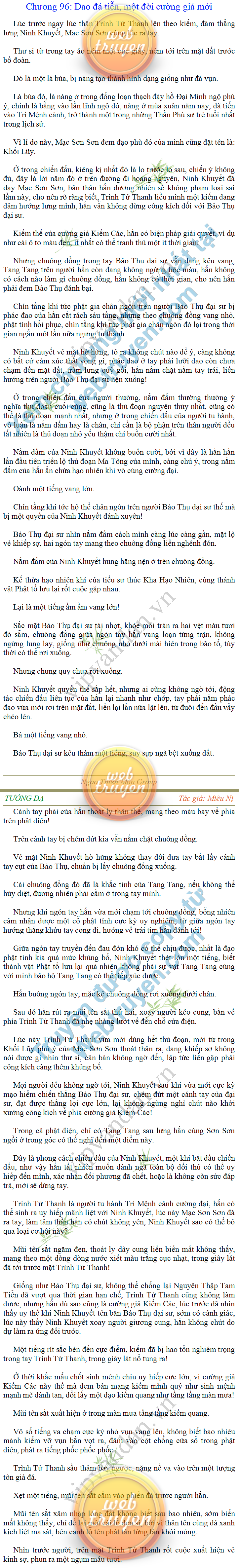 Tướng DạTruyện Converter, Truyện Huyền Huyễn, Truyện Kiếm Hiệp, Truyện Tiên HiệpTrên hoang nguyên trống trải bỗng xuất hiện ba người, cả ba đều không hẹn mà dừng chân dưới một thân cây còi cọc hiếm hoi, bọn họ không ai lên tiếng, chỉ im lặng cúi đầu nhìn xuống, tựa như dưới gốc cây có thứ gì đó rất thú vị, rất đáng để nghiên cứu và nghiền ngẫm. Hai đàn kiến vây kín quanh rễ cây màu nâu lộ ra trên mặt đất lạnh cóng tiến hành chiến tranh giành lãnh thổ, có lẽ vì trên mảnh hoang nguyên cằn cỗi vắng vẻ này chiếc rễ cây là một nơi trú ẩn tuyệt vời có một không hai nên trận chiến diễn ra hết sức khốc liệt, chỉ sau một lúc vài nghìn con kiến đã biến thành thi thể. Máu tanh là thế, nhưng thực tế trong mắt con người, vài nghìn xác kiến cũng chỉ là một mảng đen đen nhỏ xíu.Khí trời vẫn rất lạnh lẽo nhưng ba người đứng đó y phục lại khá mỏng manh, hình như họ không biết sợ lạnh là gì, cứ đứng bất động chăm chú quan sát. Không biết qua bao nhiêu lâu, bỗng một giọng khe khẽ cất lên:- Nước kiến nơi thế tục, đại đạo ra sao?Người vừa lên tiếng là một thiếu niên mặt mũi sáng sủa… *Chương này có nội dung ảnh, nếu bạn không thấy nội dung chương, vui lòng bật chế độ hiện hình ảnh của trình duyệt để đọc.