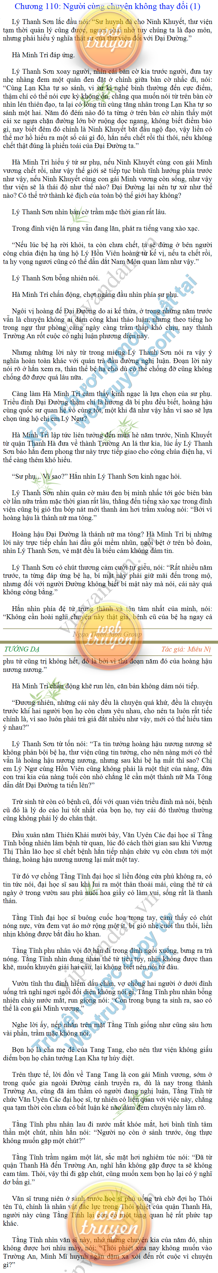 Tướng DạTruyện Converter, Truyện Huyền Huyễn, Truyện Kiếm Hiệp, Truyện Tiên HiệpTrên hoang nguyên trống trải bỗng xuất hiện ba người, cả ba đều không hẹn mà dừng chân dưới một thân cây còi cọc hiếm hoi, bọn họ không ai lên tiếng, chỉ im lặng cúi đầu nhìn xuống, tựa như dưới gốc cây có thứ gì đó rất thú vị, rất đáng để nghiên cứu và nghiền ngẫm. Hai đàn kiến vây kín quanh rễ cây màu nâu lộ ra trên mặt đất lạnh cóng tiến hành chiến tranh giành lãnh thổ, có lẽ vì trên mảnh hoang nguyên cằn cỗi vắng vẻ này chiếc rễ cây là một nơi trú ẩn tuyệt vời có một không hai nên trận chiến diễn ra hết sức khốc liệt, chỉ sau một lúc vài nghìn con kiến đã biến thành thi thể. Máu tanh là thế, nhưng thực tế trong mắt con người, vài nghìn xác kiến cũng chỉ là một mảng đen đen nhỏ xíu.Khí trời vẫn rất lạnh lẽo nhưng ba người đứng đó y phục lại khá mỏng manh, hình như họ không biết sợ lạnh là gì, cứ đứng bất động chăm chú quan sát. Không biết qua bao nhiêu lâu, bỗng một giọng khe khẽ cất lên:- Nước kiến nơi thế tục, đại đạo ra sao?Người vừa lên tiếng là một thiếu niên mặt mũi sáng sủa… *Chương này có nội dung ảnh, nếu bạn không thấy nội dung chương, vui lòng bật chế độ hiện hình ảnh của trình duyệt để đọc.