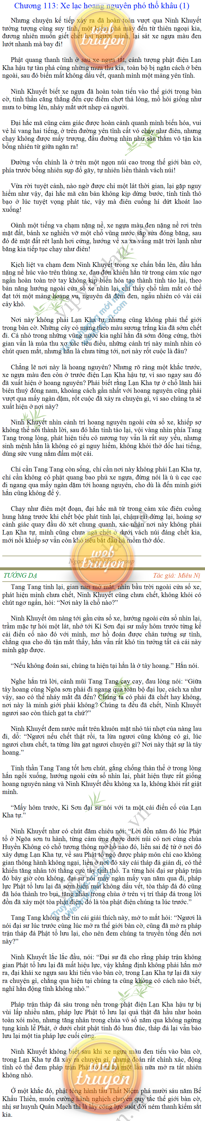 Tướng DạTruyện Converter, Truyện Huyền Huyễn, Truyện Kiếm Hiệp, Truyện Tiên HiệpTrên hoang nguyên trống trải bỗng xuất hiện ba người, cả ba đều không hẹn mà dừng chân dưới một thân cây còi cọc hiếm hoi, bọn họ không ai lên tiếng, chỉ im lặng cúi đầu nhìn xuống, tựa như dưới gốc cây có thứ gì đó rất thú vị, rất đáng để nghiên cứu và nghiền ngẫm. Hai đàn kiến vây kín quanh rễ cây màu nâu lộ ra trên mặt đất lạnh cóng tiến hành chiến tranh giành lãnh thổ, có lẽ vì trên mảnh hoang nguyên cằn cỗi vắng vẻ này chiếc rễ cây là một nơi trú ẩn tuyệt vời có một không hai nên trận chiến diễn ra hết sức khốc liệt, chỉ sau một lúc vài nghìn con kiến đã biến thành thi thể. Máu tanh là thế, nhưng thực tế trong mắt con người, vài nghìn xác kiến cũng chỉ là một mảng đen đen nhỏ xíu.Khí trời vẫn rất lạnh lẽo nhưng ba người đứng đó y phục lại khá mỏng manh, hình như họ không biết sợ lạnh là gì, cứ đứng bất động chăm chú quan sát. Không biết qua bao nhiêu lâu, bỗng một giọng khe khẽ cất lên:- Nước kiến nơi thế tục, đại đạo ra sao?Người vừa lên tiếng là một thiếu niên mặt mũi sáng sủa… *Chương này có nội dung ảnh, nếu bạn không thấy nội dung chương, vui lòng bật chế độ hiện hình ảnh của trình duyệt để đọc.