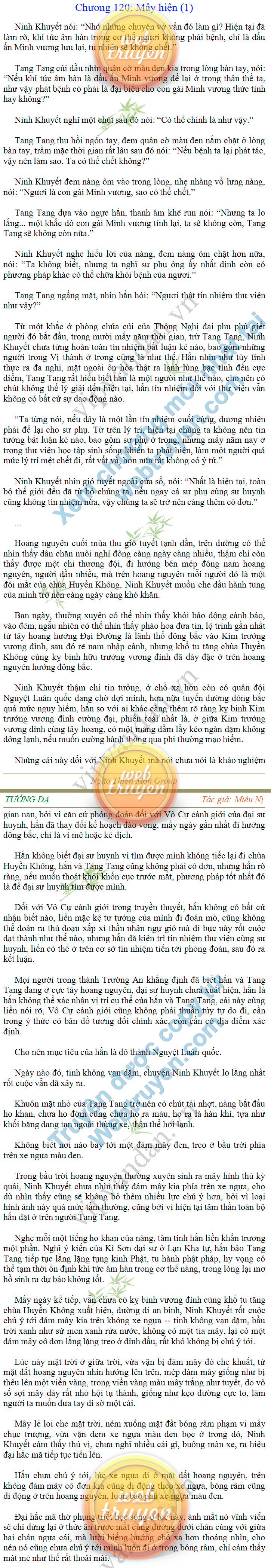 Tướng DạTruyện Converter, Truyện Huyền Huyễn, Truyện Kiếm Hiệp, Truyện Tiên HiệpTrên hoang nguyên trống trải bỗng xuất hiện ba người, cả ba đều không hẹn mà dừng chân dưới một thân cây còi cọc hiếm hoi, bọn họ không ai lên tiếng, chỉ im lặng cúi đầu nhìn xuống, tựa như dưới gốc cây có thứ gì đó rất thú vị, rất đáng để nghiên cứu và nghiền ngẫm. Hai đàn kiến vây kín quanh rễ cây màu nâu lộ ra trên mặt đất lạnh cóng tiến hành chiến tranh giành lãnh thổ, có lẽ vì trên mảnh hoang nguyên cằn cỗi vắng vẻ này chiếc rễ cây là một nơi trú ẩn tuyệt vời có một không hai nên trận chiến diễn ra hết sức khốc liệt, chỉ sau một lúc vài nghìn con kiến đã biến thành thi thể. Máu tanh là thế, nhưng thực tế trong mắt con người, vài nghìn xác kiến cũng chỉ là một mảng đen đen nhỏ xíu.Khí trời vẫn rất lạnh lẽo nhưng ba người đứng đó y phục lại khá mỏng manh, hình như họ không biết sợ lạnh là gì, cứ đứng bất động chăm chú quan sát. Không biết qua bao nhiêu lâu, bỗng một giọng khe khẽ cất lên:- Nước kiến nơi thế tục, đại đạo ra sao?Người vừa lên tiếng là một thiếu niên mặt mũi sáng sủa… *Chương này có nội dung ảnh, nếu bạn không thấy nội dung chương, vui lòng bật chế độ hiện hình ảnh của trình duyệt để đọc.