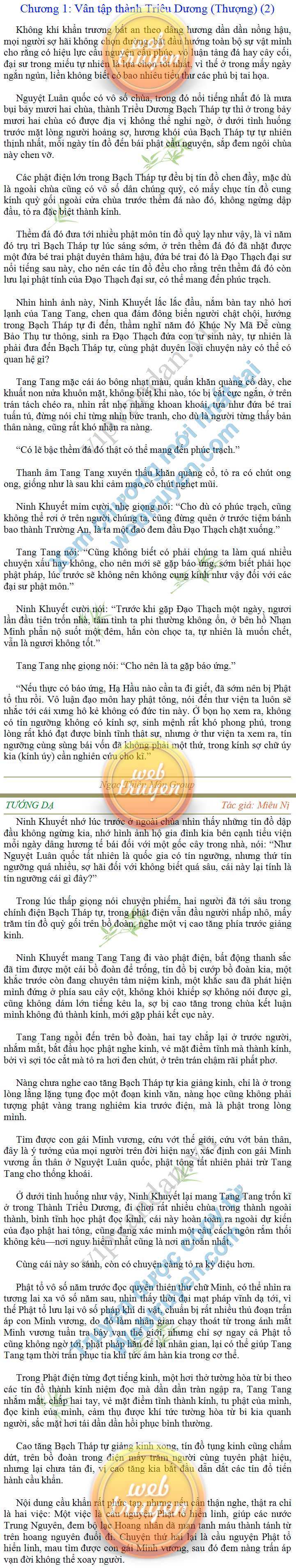 Tướng DạTruyện Converter, Truyện Huyền Huyễn, Truyện Kiếm Hiệp, Truyện Tiên HiệpTrên hoang nguyên trống trải bỗng xuất hiện ba người, cả ba đều không hẹn mà dừng chân dưới một thân cây còi cọc hiếm hoi, bọn họ không ai lên tiếng, chỉ im lặng cúi đầu nhìn xuống, tựa như dưới gốc cây có thứ gì đó rất thú vị, rất đáng để nghiên cứu và nghiền ngẫm. Hai đàn kiến vây kín quanh rễ cây màu nâu lộ ra trên mặt đất lạnh cóng tiến hành chiến tranh giành lãnh thổ, có lẽ vì trên mảnh hoang nguyên cằn cỗi vắng vẻ này chiếc rễ cây là một nơi trú ẩn tuyệt vời có một không hai nên trận chiến diễn ra hết sức khốc liệt, chỉ sau một lúc vài nghìn con kiến đã biến thành thi thể. Máu tanh là thế, nhưng thực tế trong mắt con người, vài nghìn xác kiến cũng chỉ là một mảng đen đen nhỏ xíu.Khí trời vẫn rất lạnh lẽo nhưng ba người đứng đó y phục lại khá mỏng manh, hình như họ không biết sợ lạnh là gì, cứ đứng bất động chăm chú quan sát. Không biết qua bao nhiêu lâu, bỗng một giọng khe khẽ cất lên:- Nước kiến nơi thế tục, đại đạo ra sao?Người vừa lên tiếng là một thiếu niên mặt mũi sáng sủa… *Chương này có nội dung ảnh, nếu bạn không thấy nội dung chương, vui lòng bật chế độ hiện hình ảnh của trình duyệt để đọc.